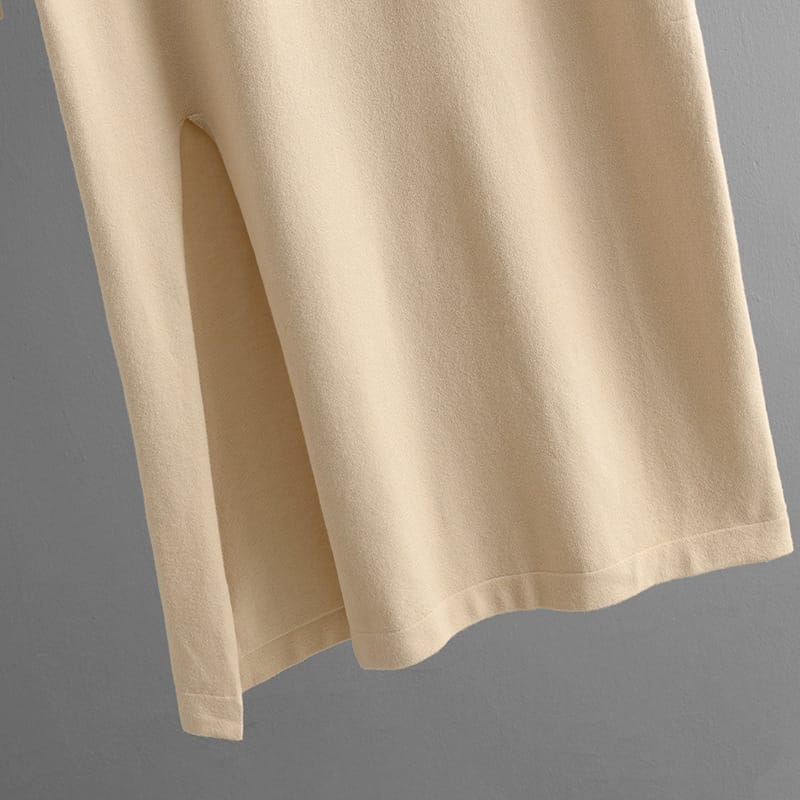 Half Turtleneck Knit Maxi Dress With Side Slit