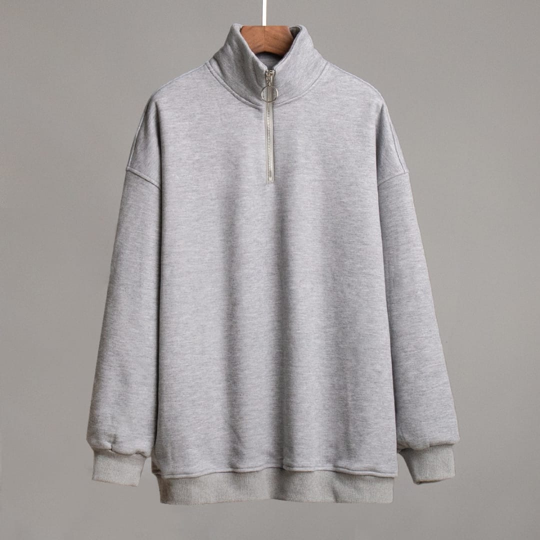Half Zip Fleeced Oversized Dropped Shoulders Sweatshirt