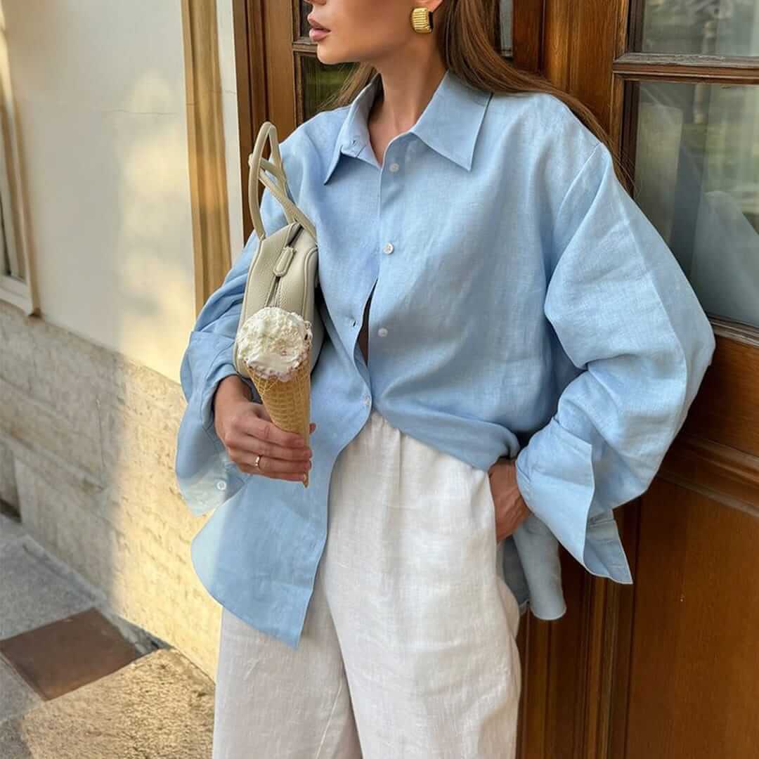 Heathered Woven Button-Up Blouse