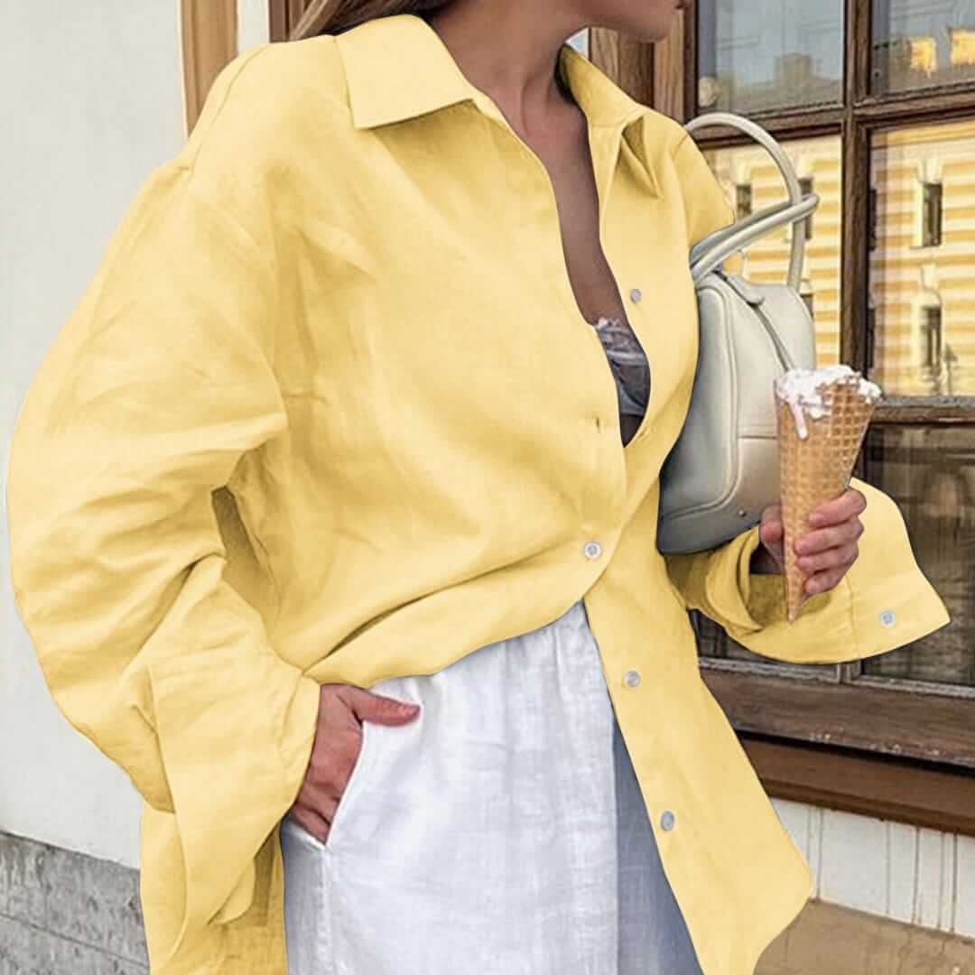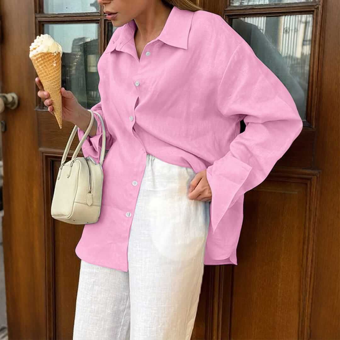 Stay chic and comfortable with the Womens Heathered Woven Button-Up Blouse, featuring a soft fabric and classic designperfect for office wear, casual outings, or layering.