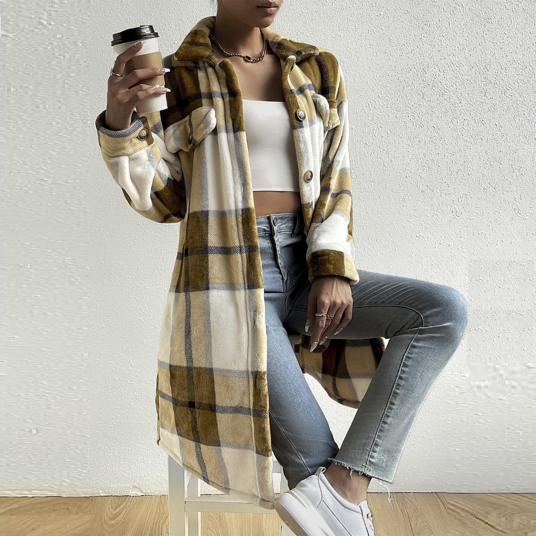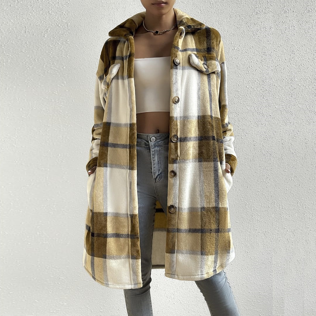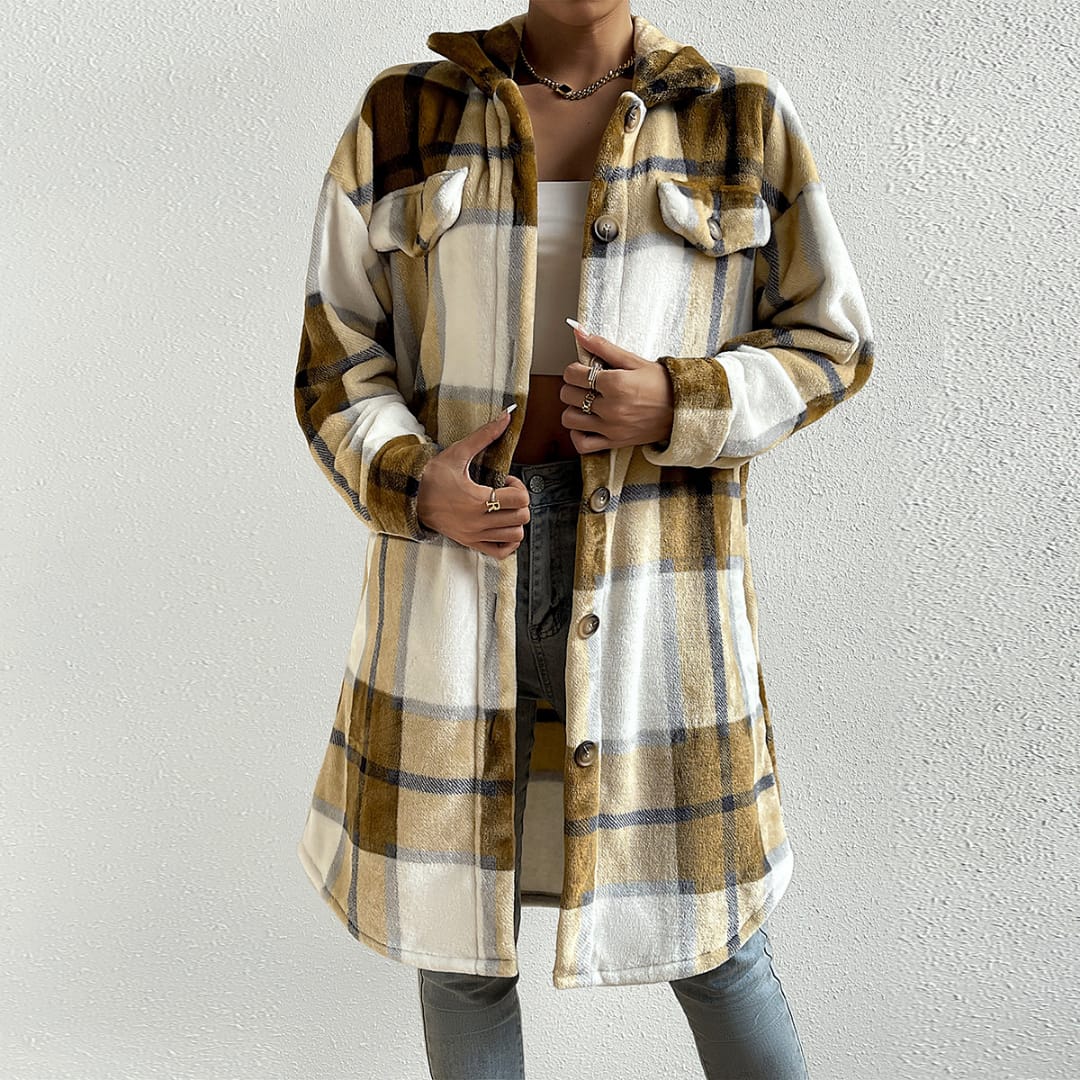 Stay warm and stylish with this women’s heavyweight plaid jacket—perfect for cold weather and classic layered looks.