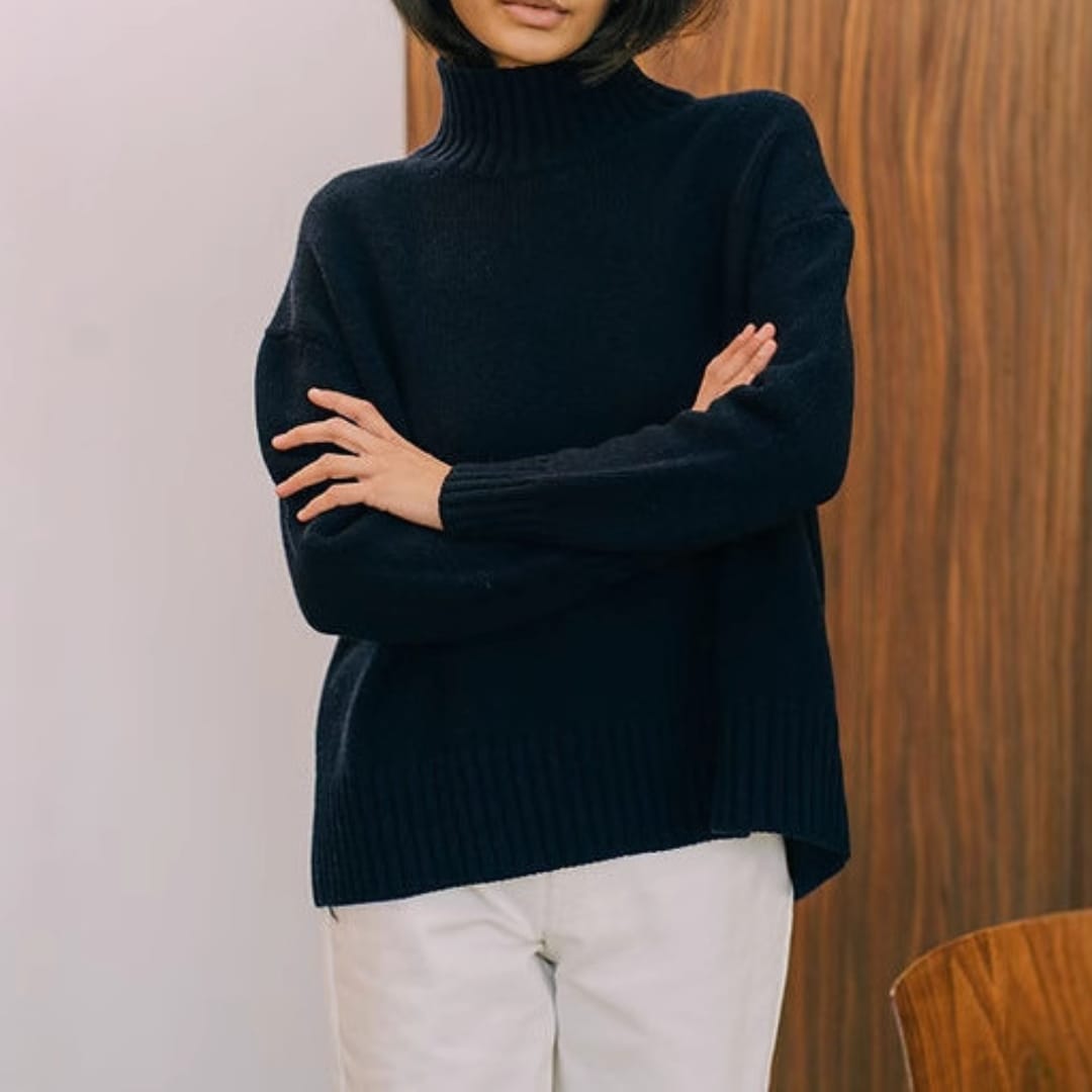 High Ribbed Collar Boxy Knit Long Sweater