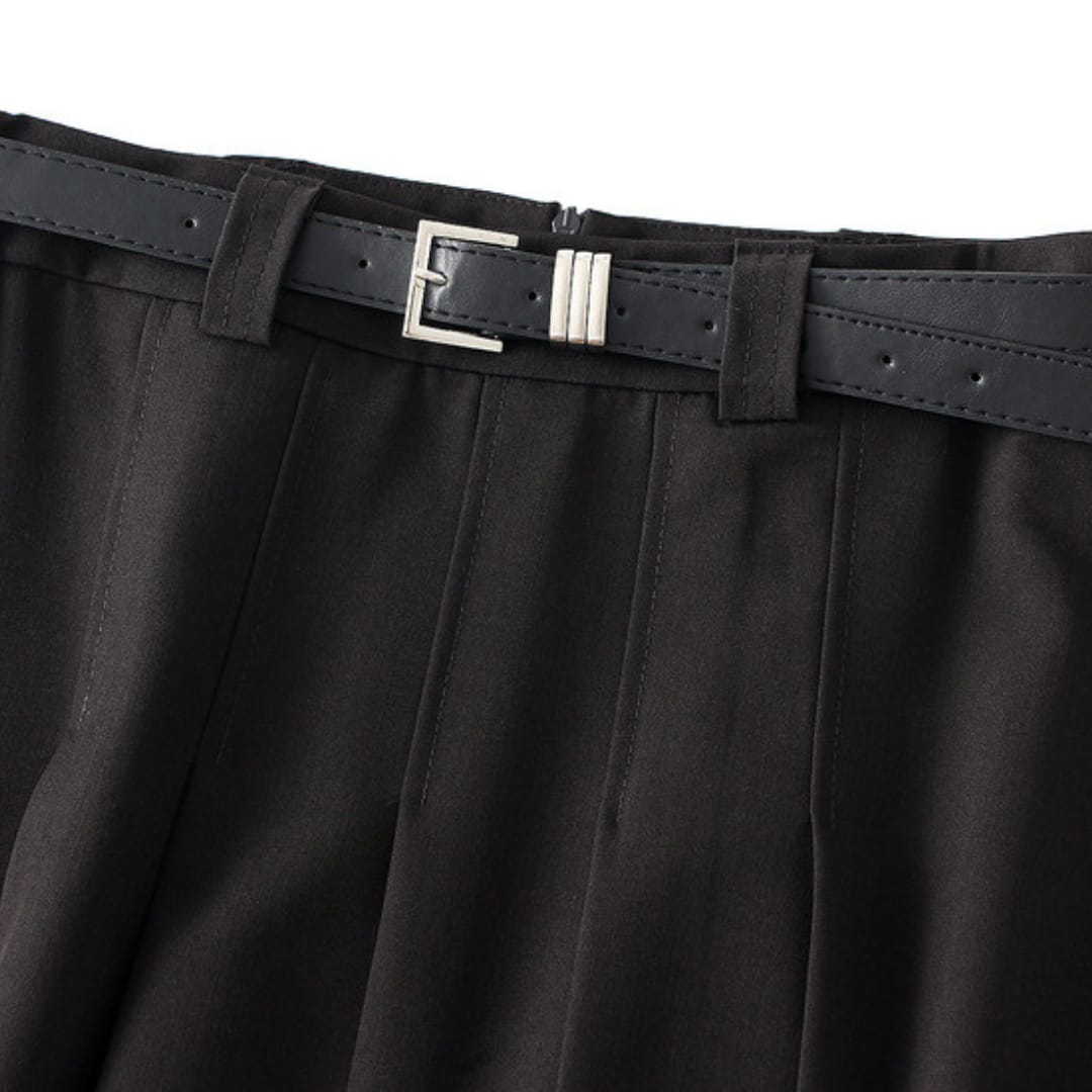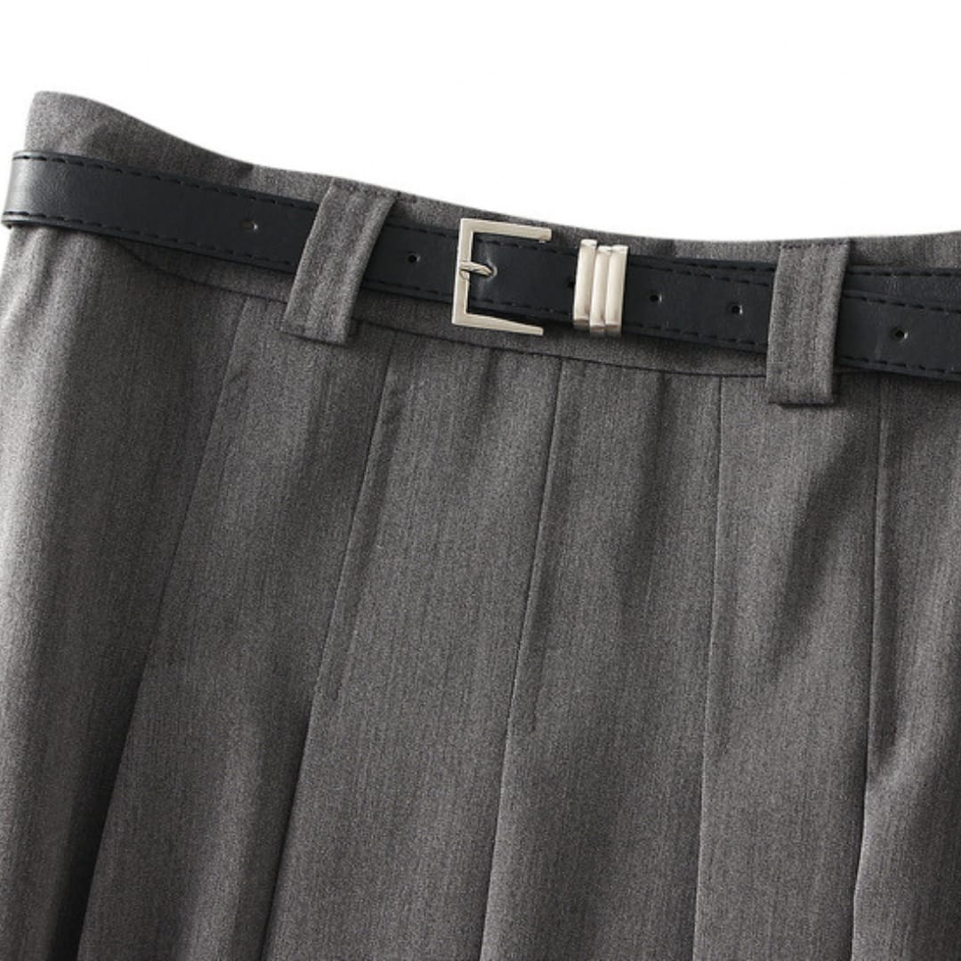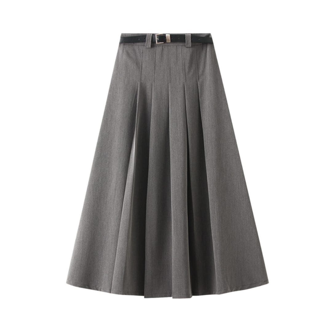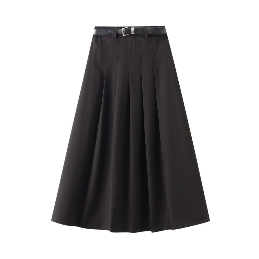 Step out in effortless elegance with this high waist pleated midi skirt with belt. Designed with a flattering A-line silhouette, it features crisp pleats and a matching belt to accentuate the waistline. The midi length offers a sophisticated touch, making it perfect for work, brunch, or an evening out. Pair it with a tucked-in blouse or a fitted top to create a polished, feminine look that moves gracefully with every step.