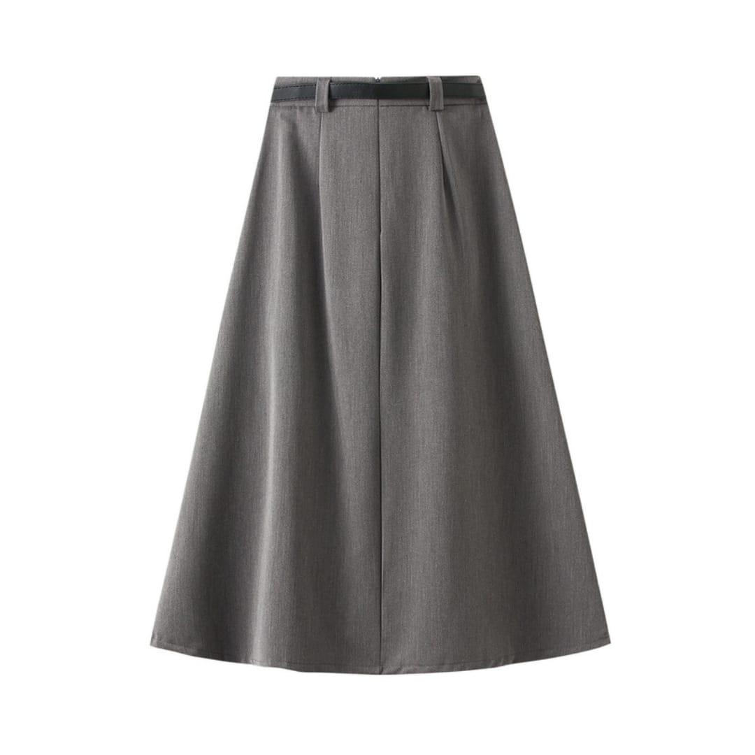 High Waist Pleated Midi Skirt with Belt
