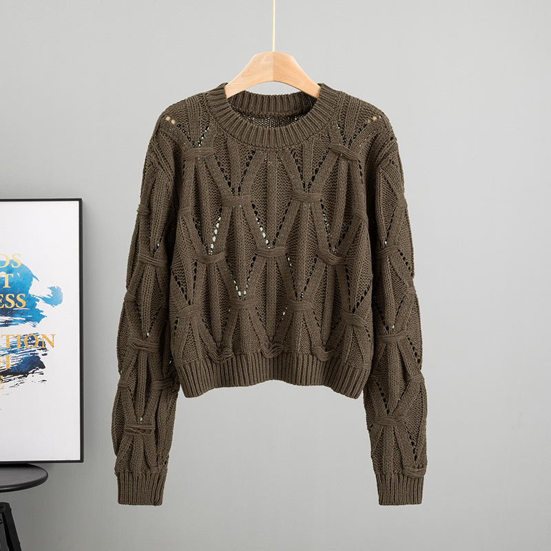 Stay stylish and cozy with our Autumn Winter Hollow Long-Sleeved Womens Short Sweater perfect for layering and adding a modern twist to seasonal outfits.