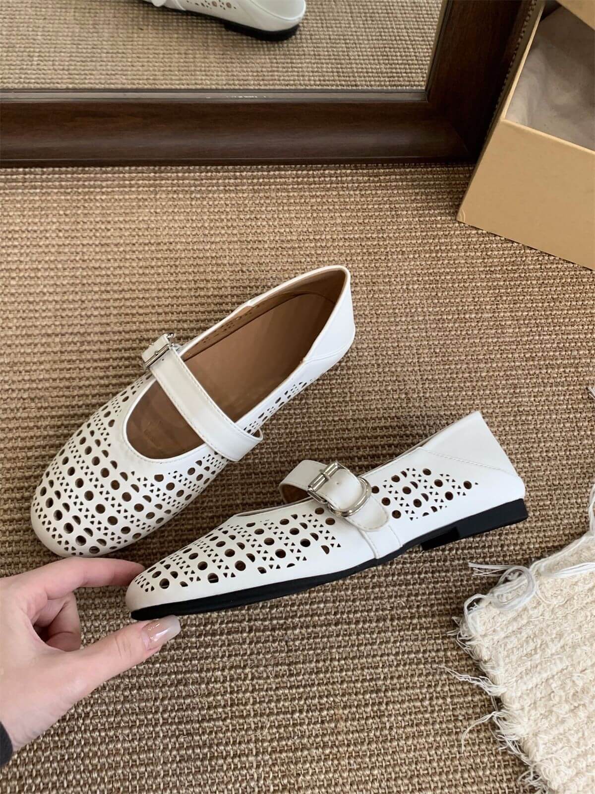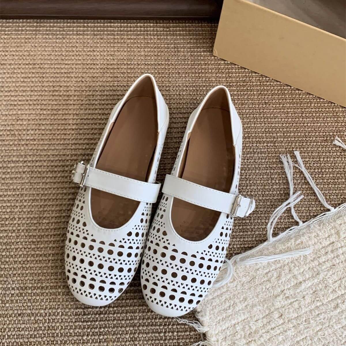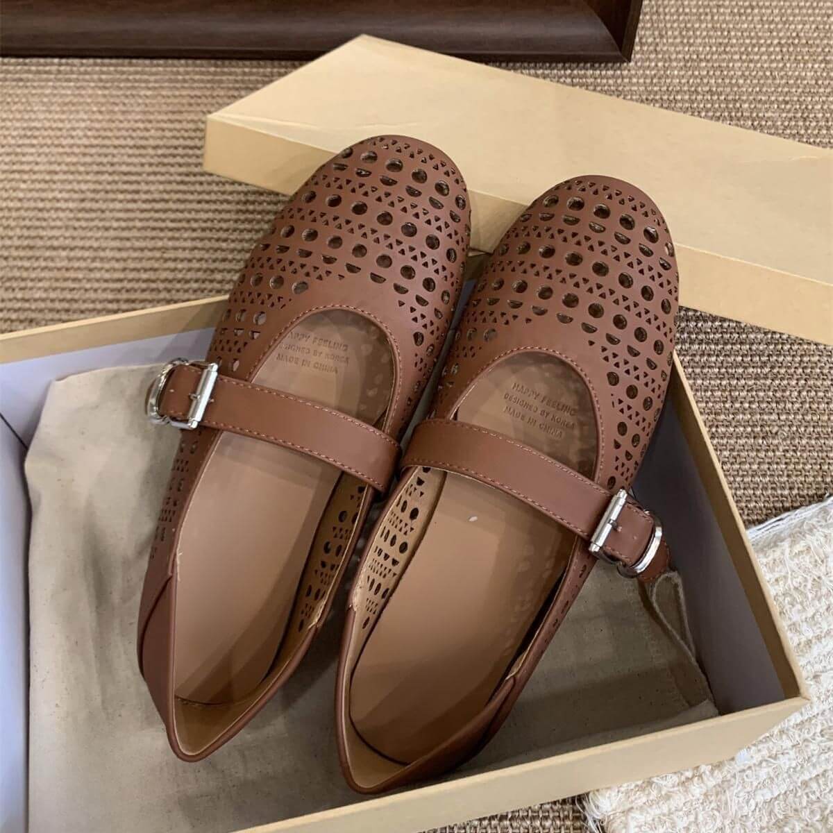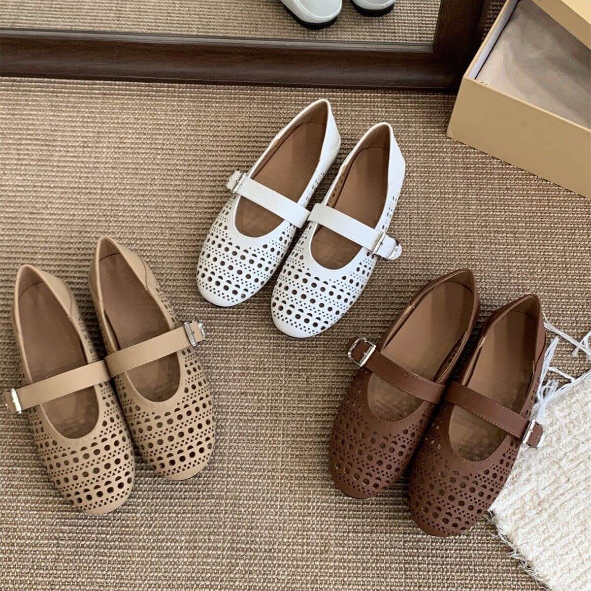 Women Hollowed Strapped Mary Jane Flats – stylish and breathable flats with cut-out straps, soft cushioning, and versatile design for everyday comfort and elegance.