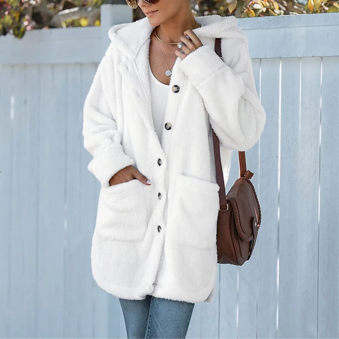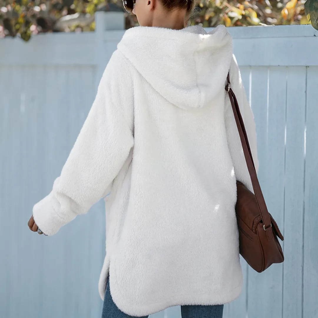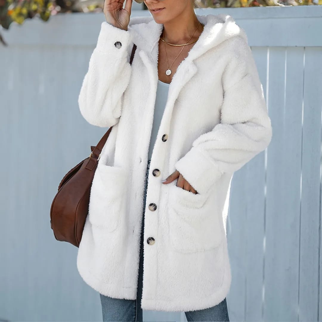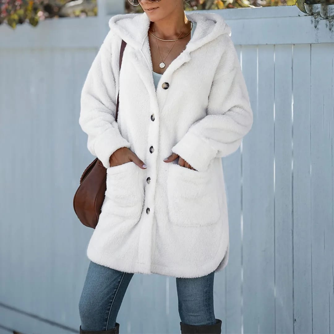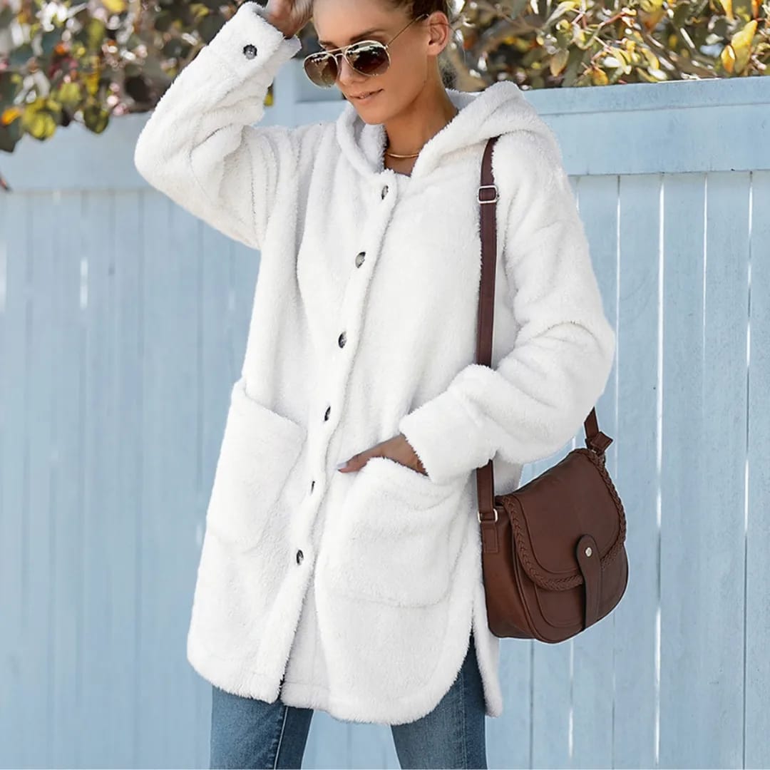 Stay warm and cozy with this women’s hooded fluffy winter jacket—perfect for chilly days and stylish cold-weather protection.