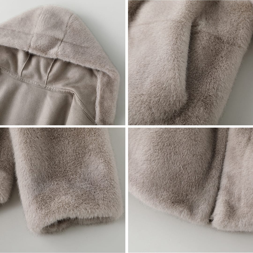 Hooded Full Faux Mink Fur Jacket with Zip