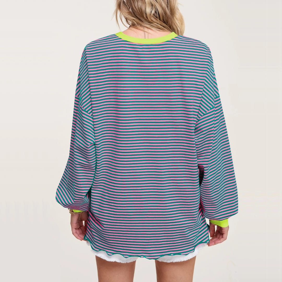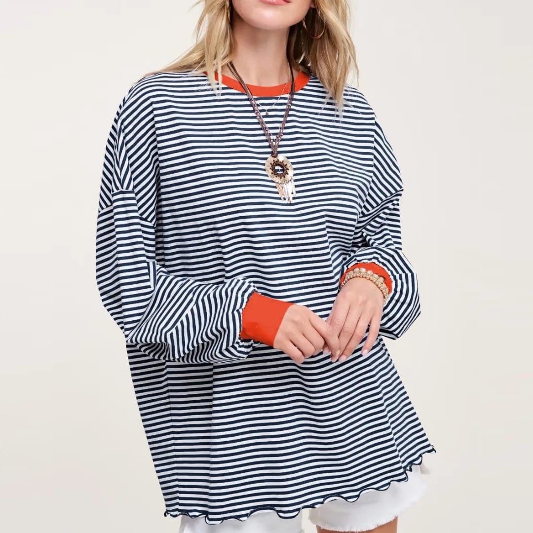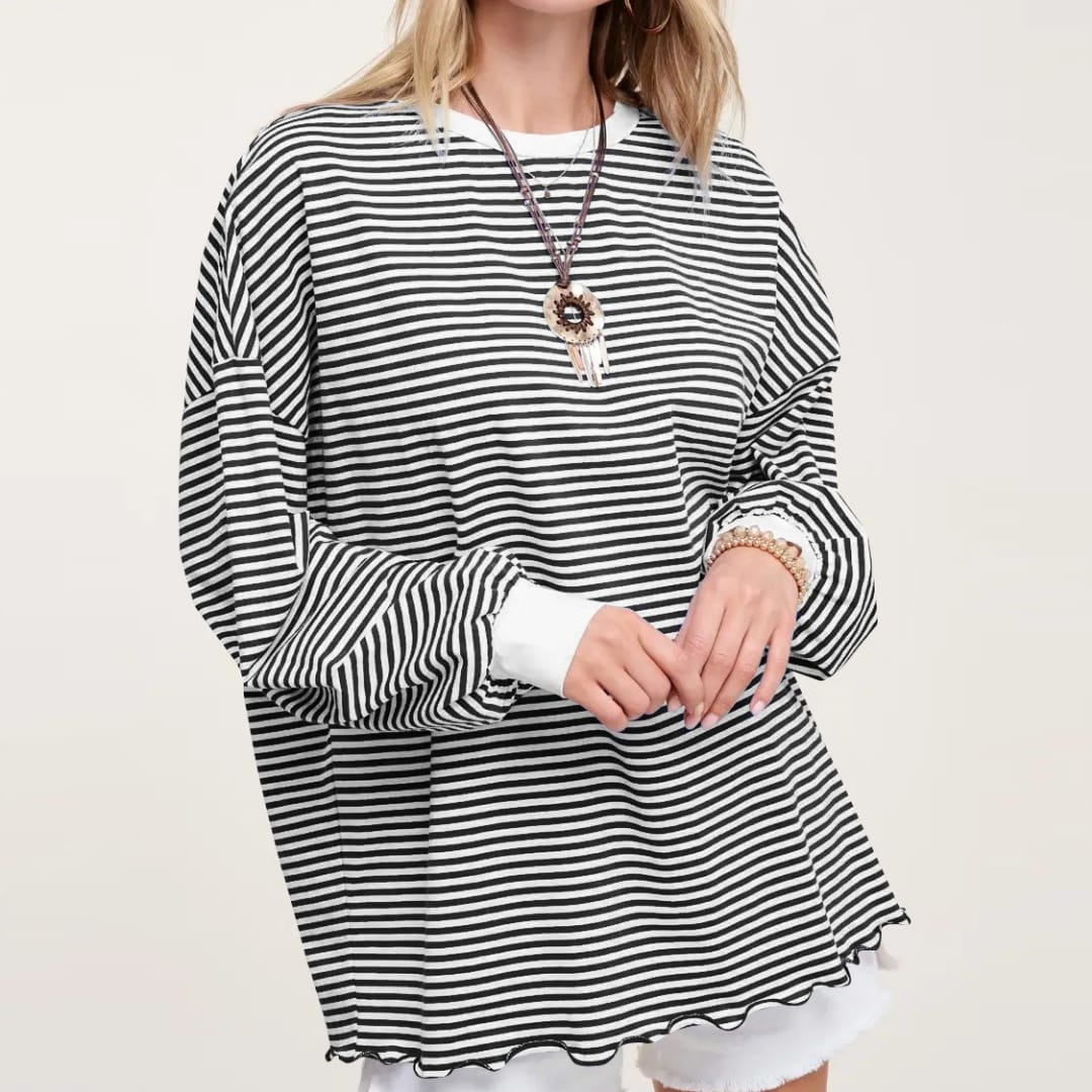 Stand out effortlessly with our Irregular Hem Long Sleeve T-Shirt, designed for women who love a mix of comfort and trendy details. Crafted from soft, breathable fabric, this top features a relaxed fit and an asymmetrical hemline that adds a modern twist to a classic silhouette. The long sleeves provide warmth for cooler days, making it perfect for layering or wearing alone. Pair it with jeans, leggings, or skirts for a versatile look that transitions from casual outings to relaxed weekends. A stylish staple that brings personality and comfort to everyday wear.