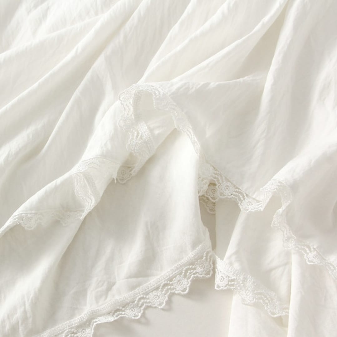 Irregular Lace Hem Midi Skirt With Elastic Waist