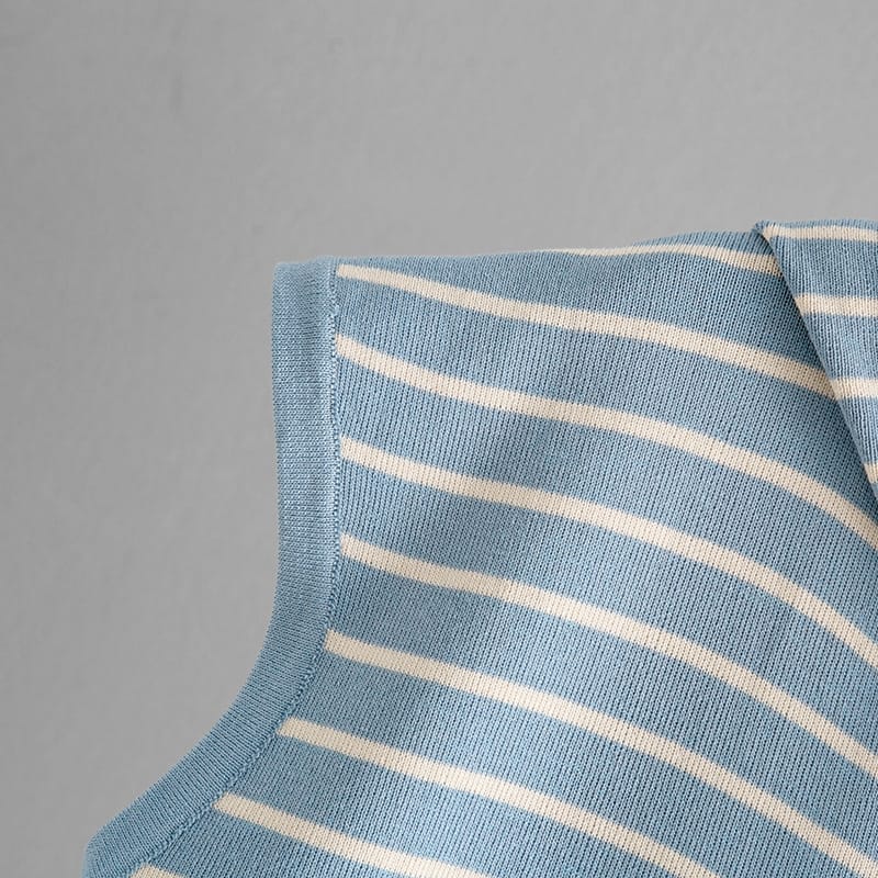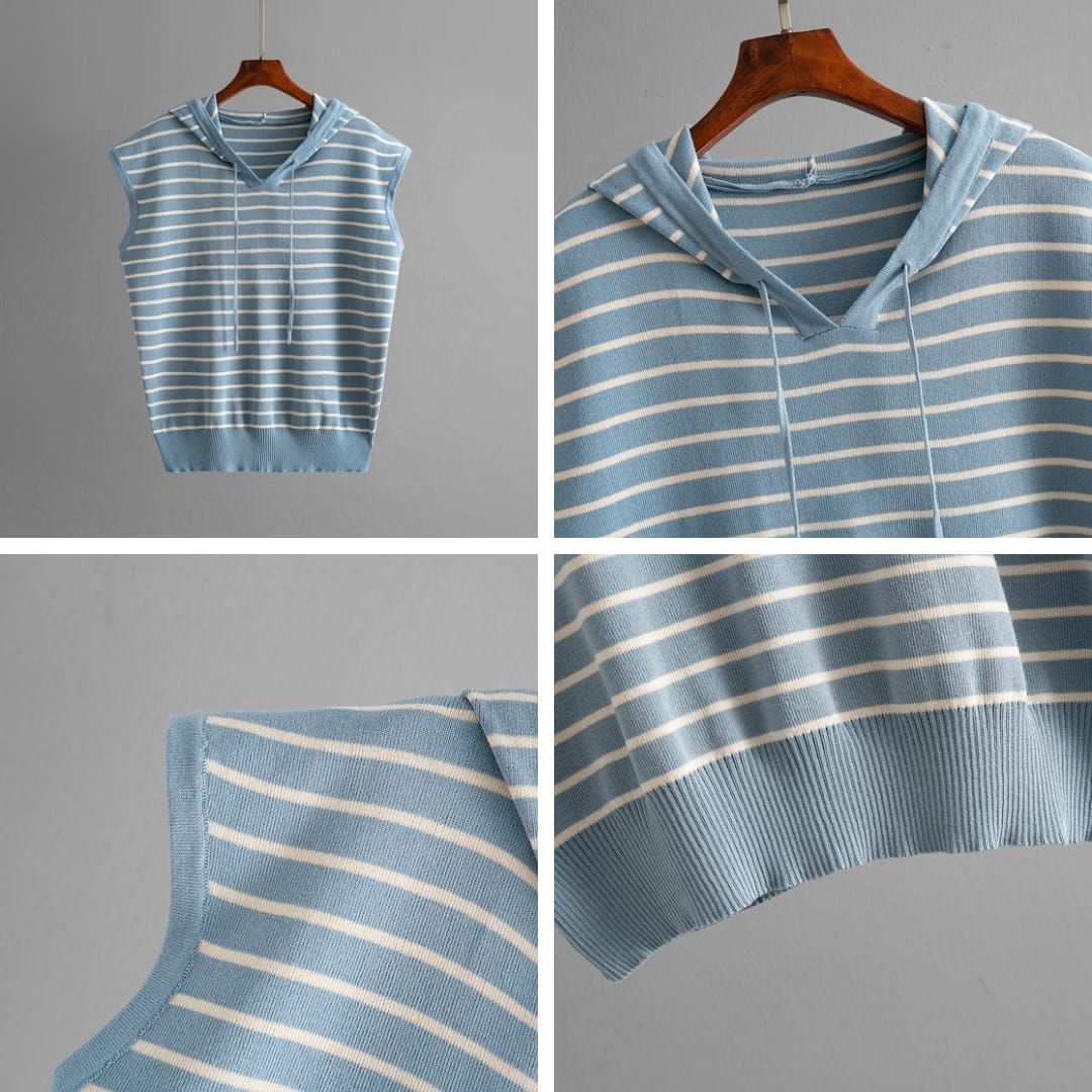Knit Set Of Sleeveless Hooded Striped Top and Pants