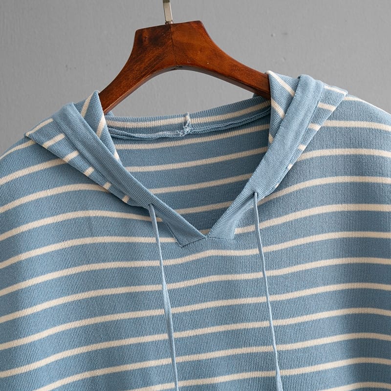 Stay trendy and comfortable with our 3 Season Womens Knitted Set featuring a Sleeveless Hooded Striped Top and Casual Pants perfect for spring, summer, and autumn wear.