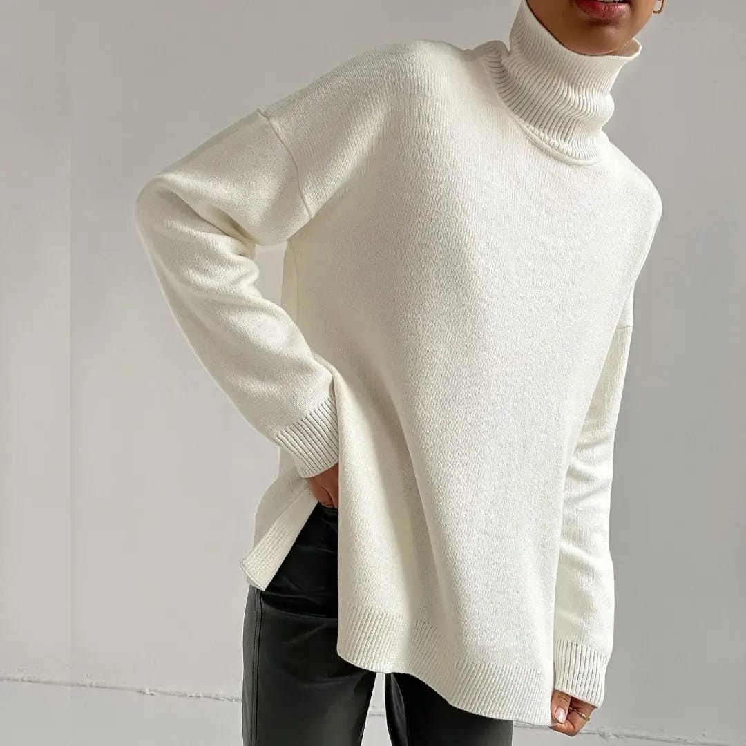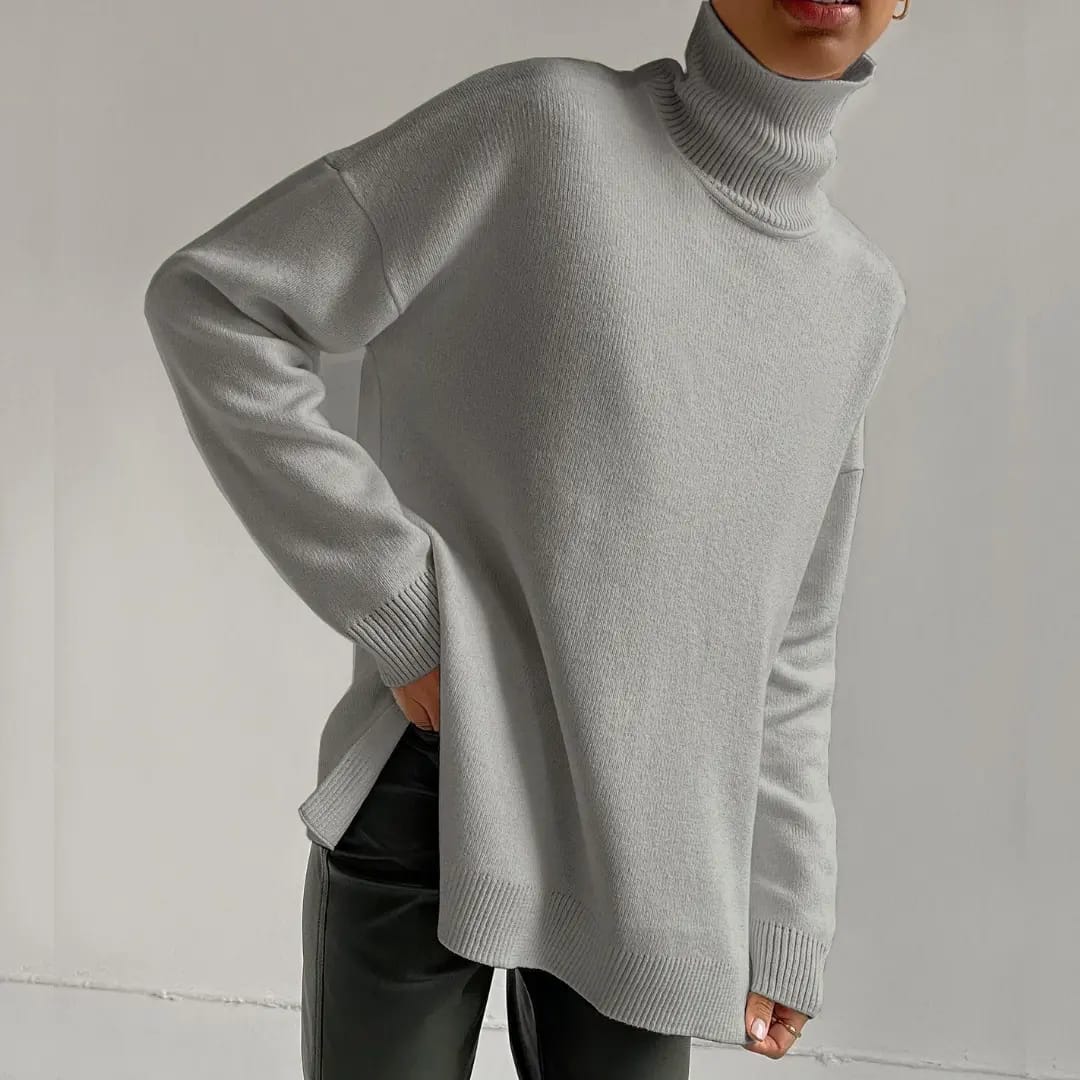 Stay effortlessly cozy with this loose fit solid color turtleneck sweater a relaxed essential for chilly seasons.