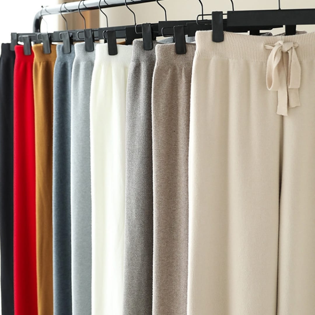 Stay comfortable and stylish with Womens Autumn and Winter Knitted Viscose Blended Elastic Waist Casual Pants, featuring a soft knit fabric, relaxed fit, and versatile design for everyday wear.