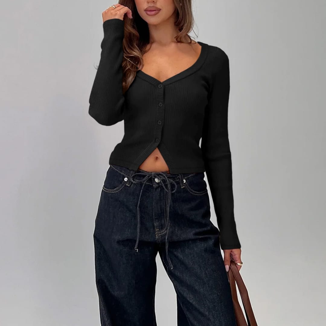Stay cozy and chic with our Womens Ribbed Knitted Button Up Long Sleeve Top soft, stylish, and perfect for effortless everyday wear.