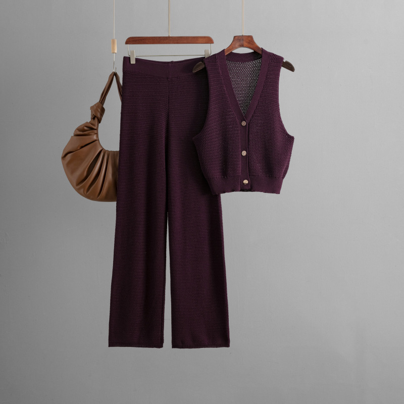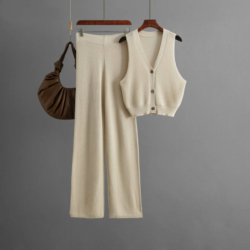 Knitted Buttoned Vest with Wide Pants