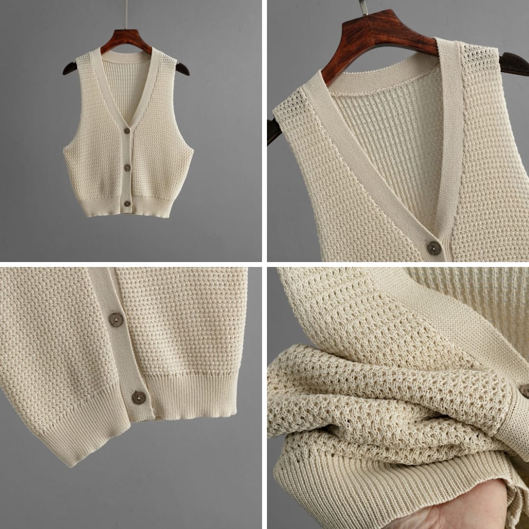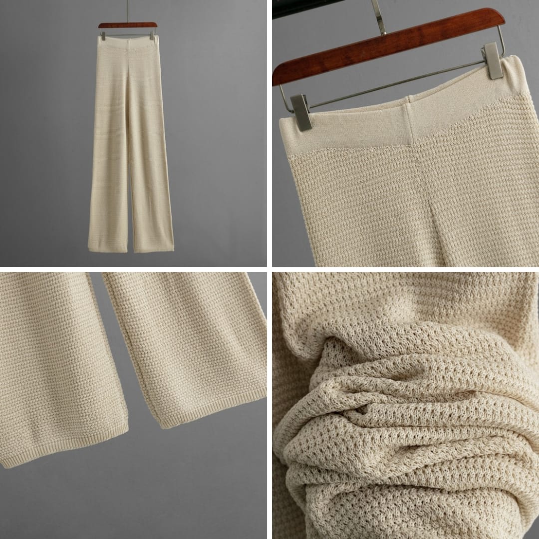 Upgrade your wardrobe with our Womens Knitted Buttoned Vest with Wide Pants. This chic two-piece set combines cozy knitwear with modern tailoring perfect for casual days, office wear, or elegant outings.