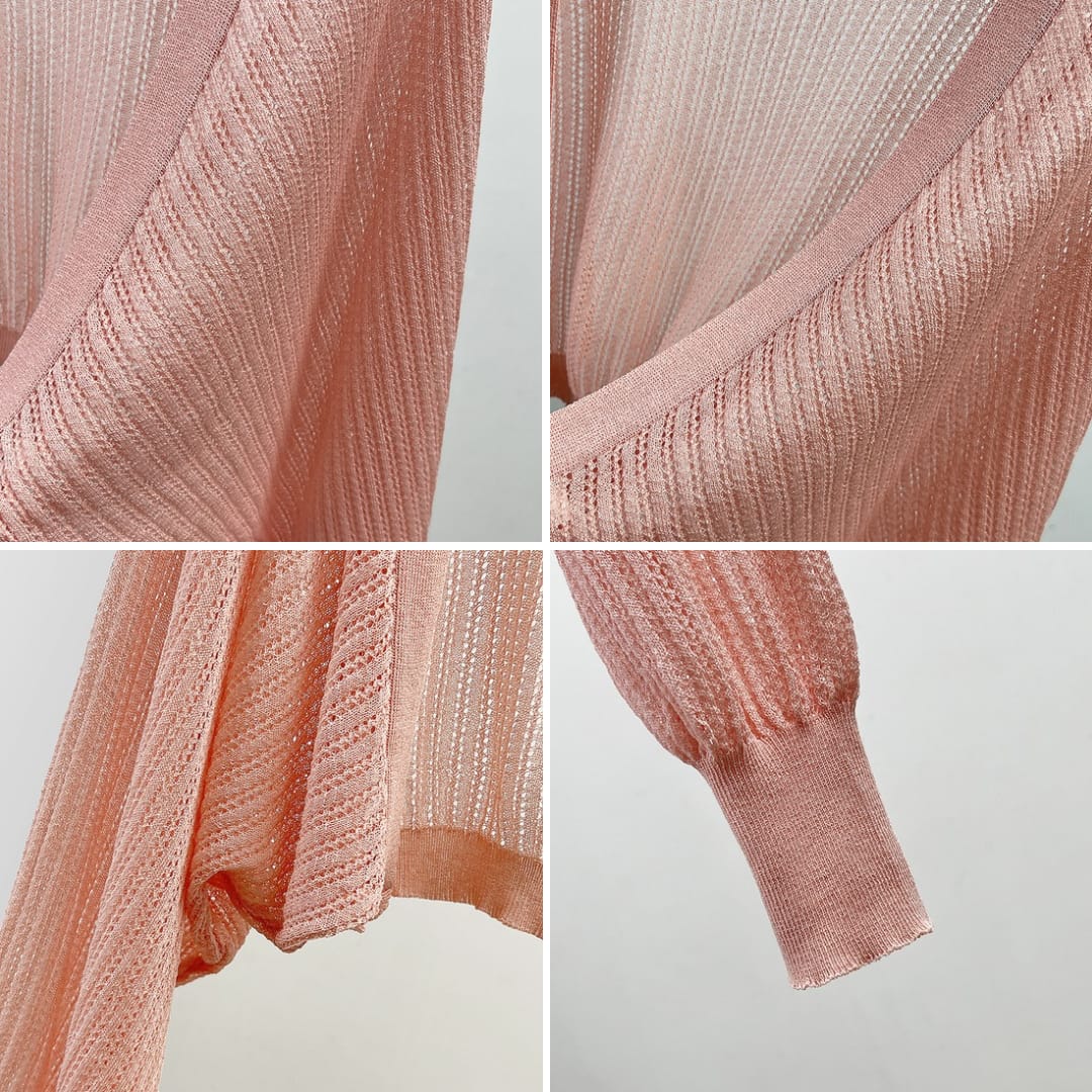 Lightweight hollow-knit cardigan perfect for layering with a touch of elegance and breathability.