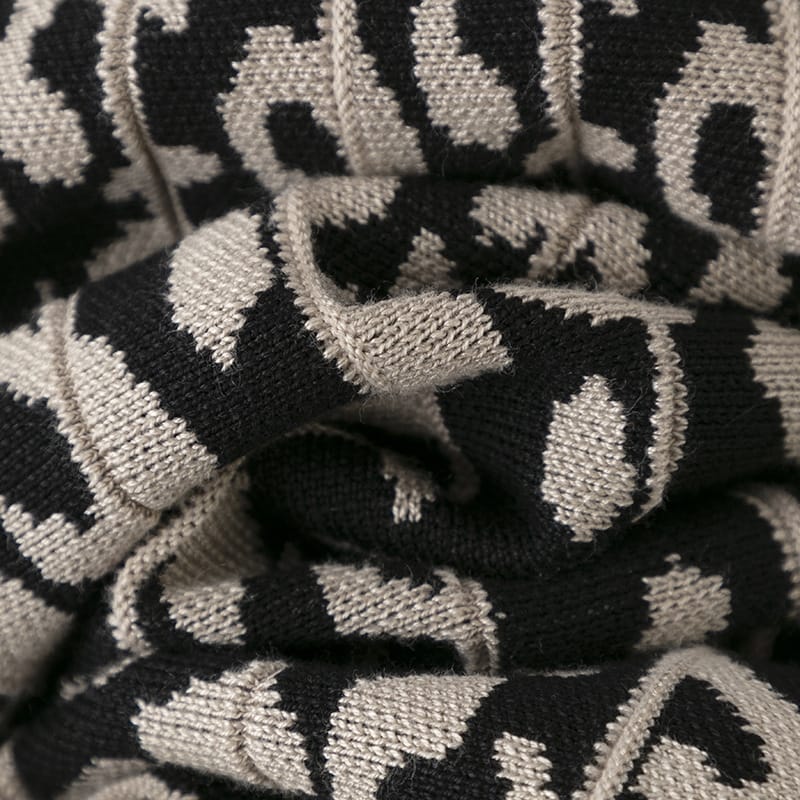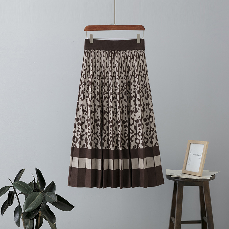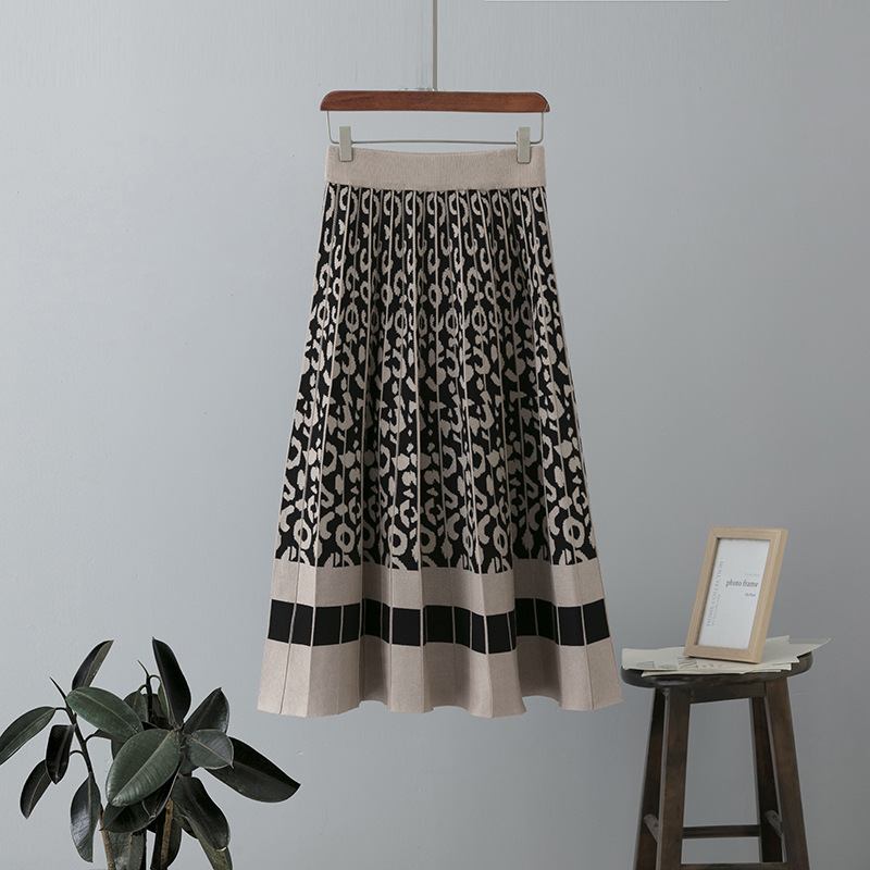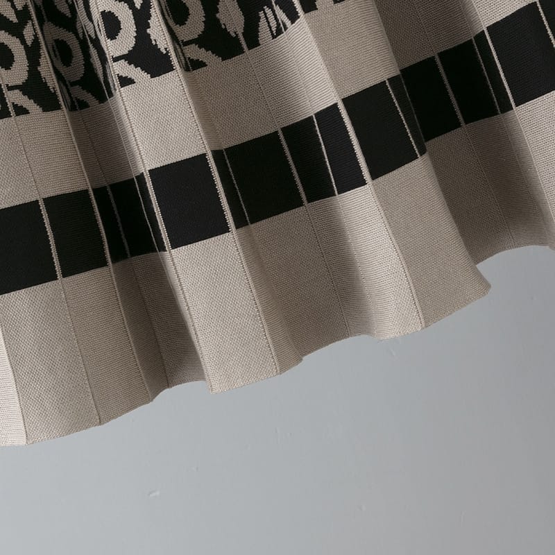Chic knitted patterned midi skirt combining comfort with stylish design.