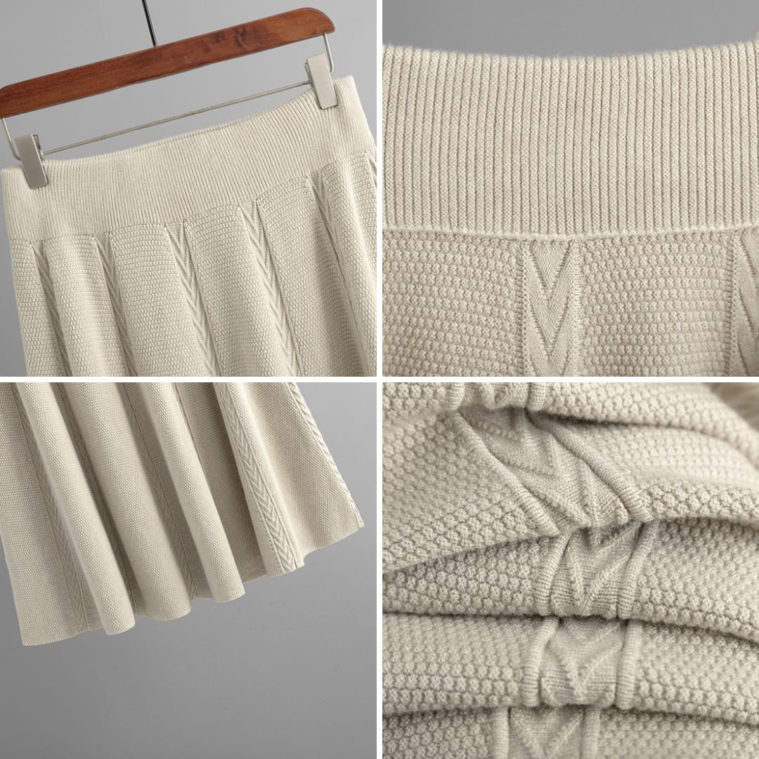 Stylish knitted patterned midi skirt for a fashionable and cozy look.