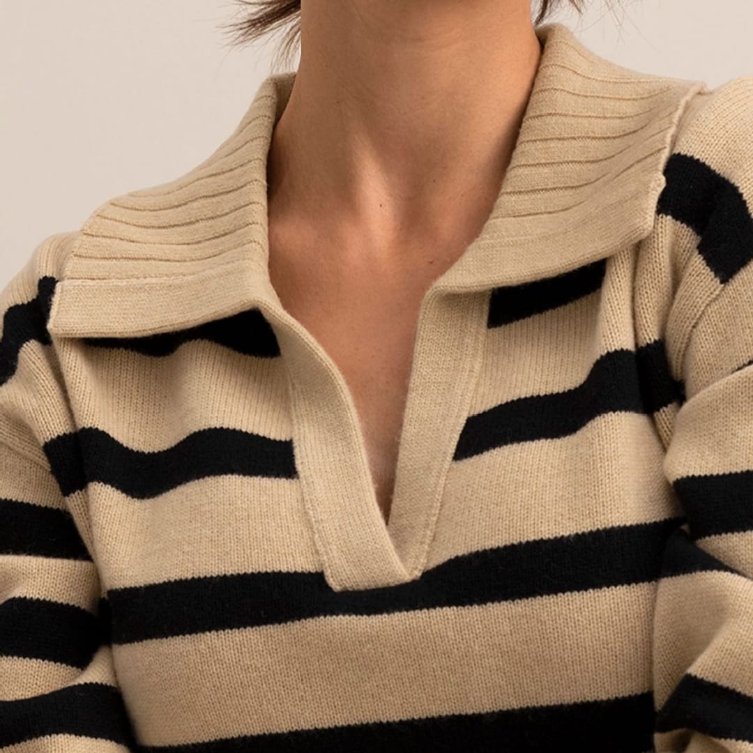 Knitted Polo Collar Striped Sweater