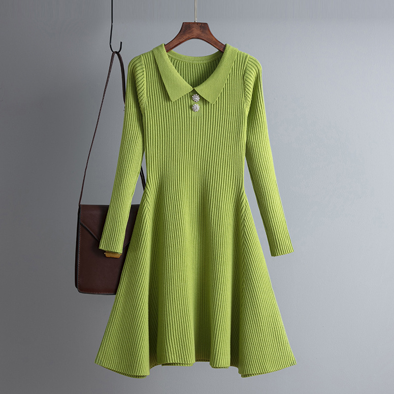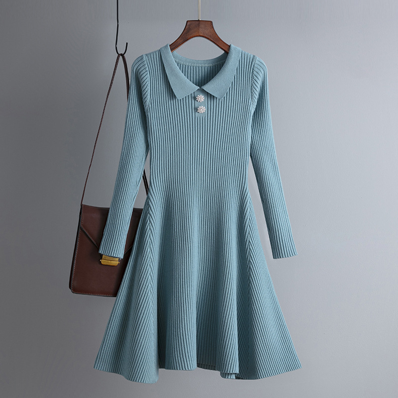 Warm and refined, this knitted thick polo collar midi dress brings classic elegance to cold-weather dressing.