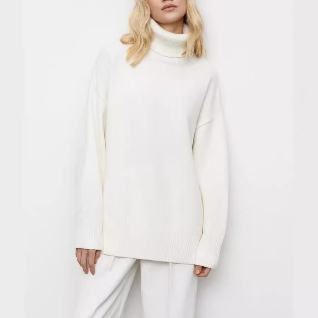 Relaxed and warm, this knitted turtleneck loose fit sweater offers cozy comfort with a stylish silhouette.