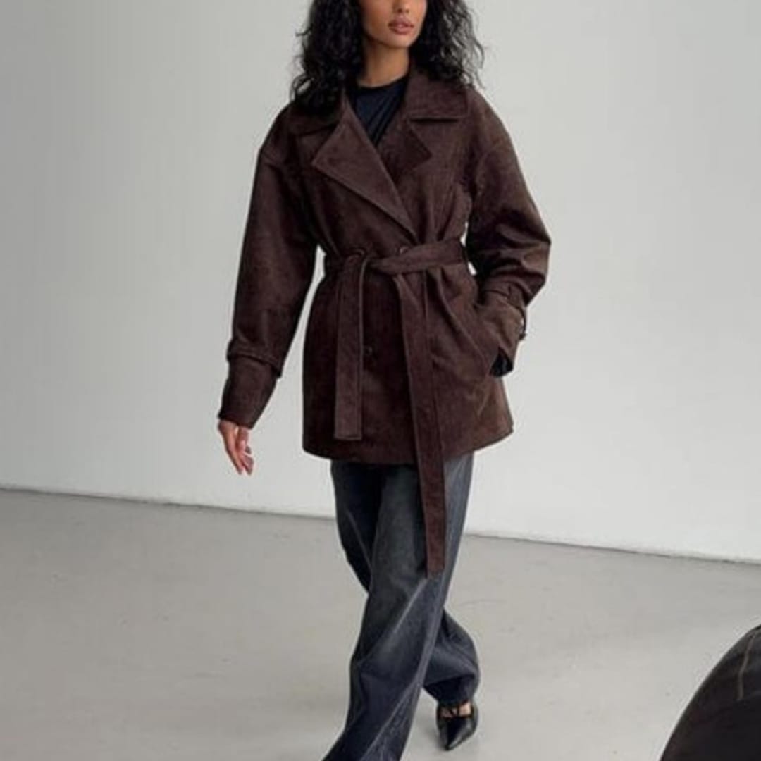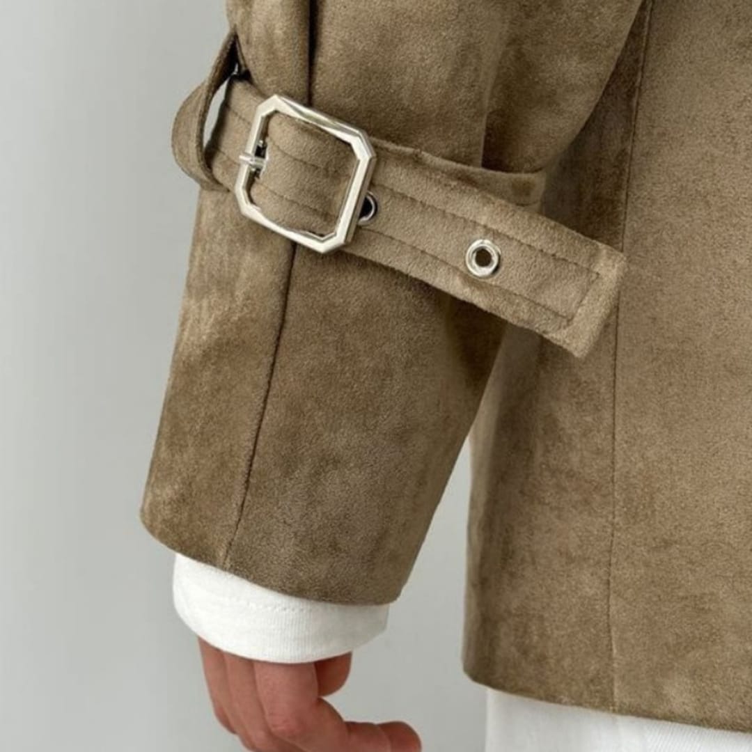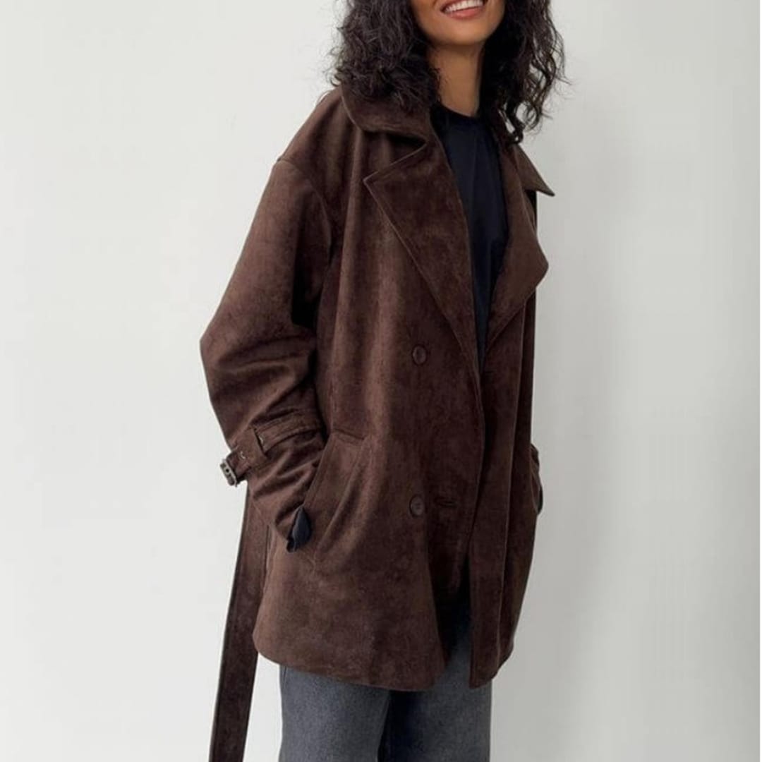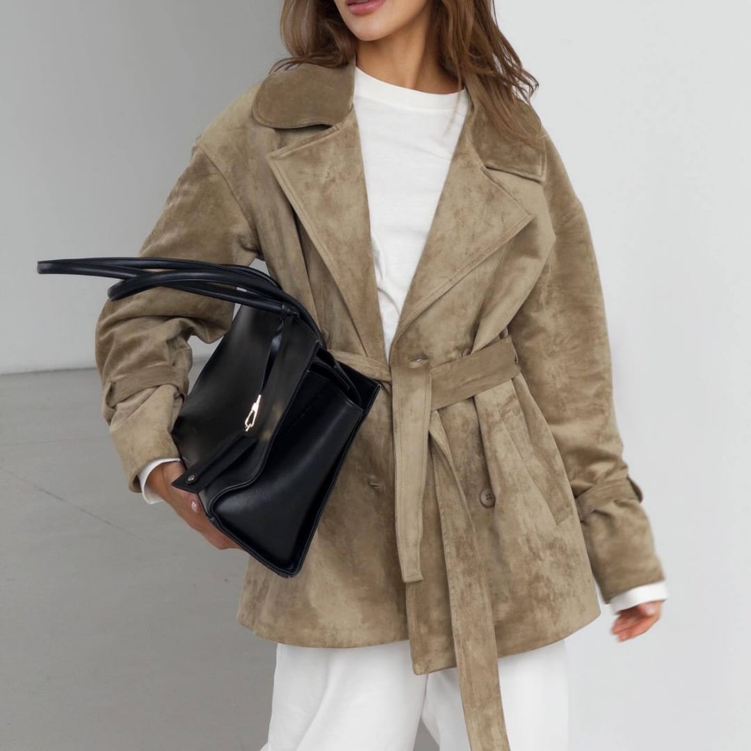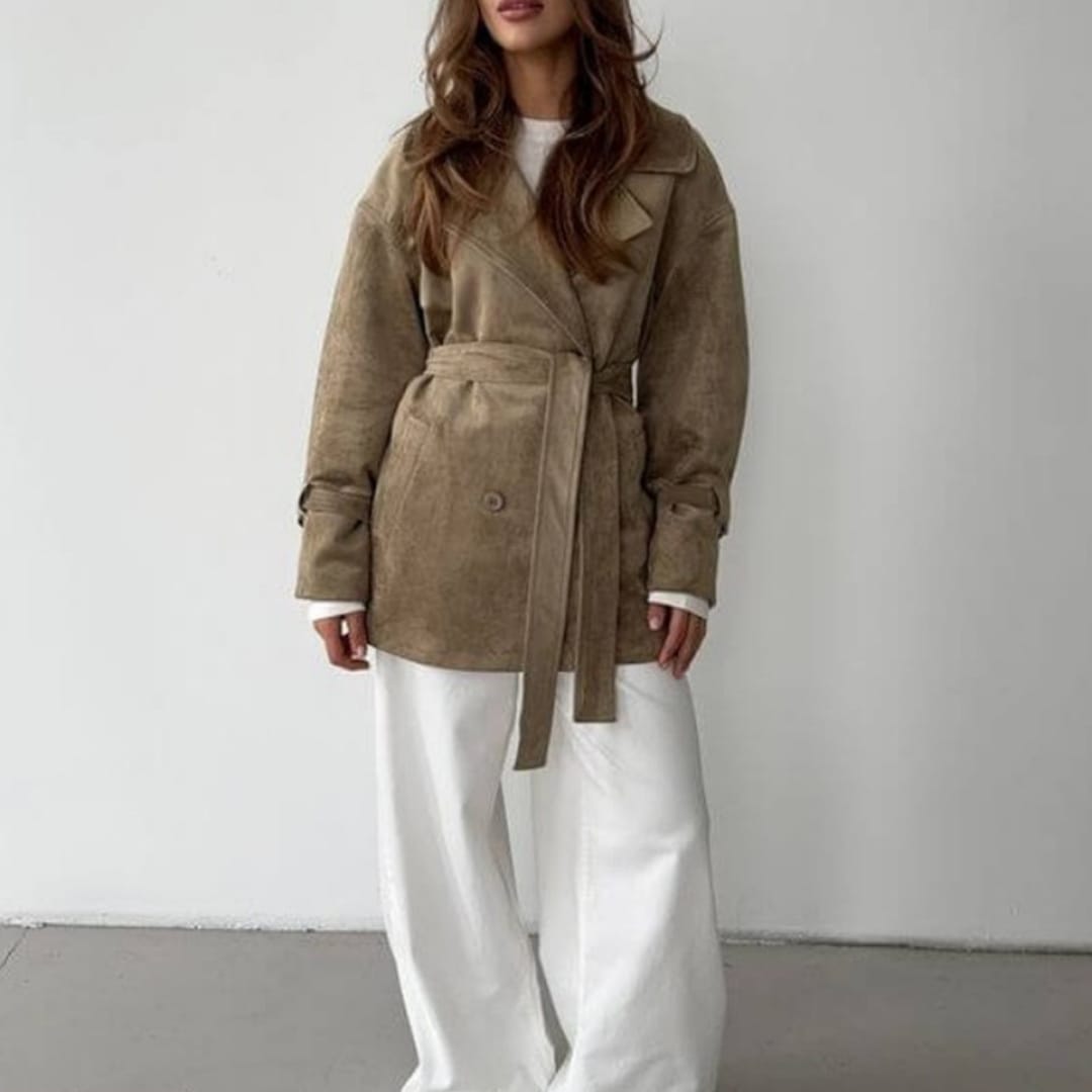 Add a touch of retro sophistication to your fall and winter wardrobe with this Women’s Lapel-Collar Tie-Waist Vintage Suede Jacket. Made from premium-quality suede, it features a structured lapel collar and an adjustable tie waist that enhances your silhouette while ensuring comfort and warmth. The soft, velvety texture and vintage-inspired design make it a perfect choice for both casual outings and elegant occasions. Pair it effortlessly with jeans, skirts, or boots for a refined yet relaxed look. This timeless suede jacket is a must-have piece for the stylish modern woman.