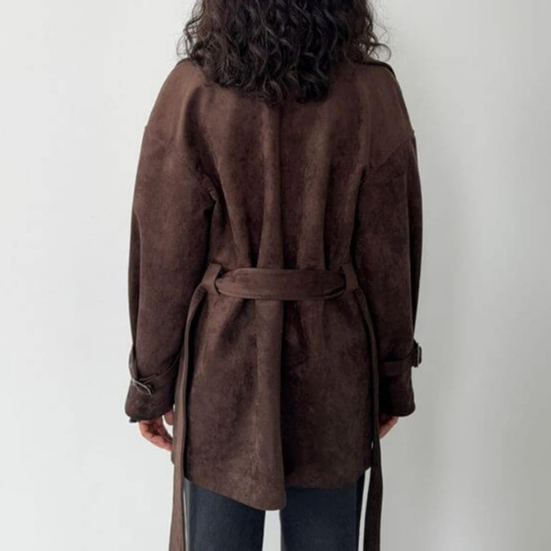 Lapel-Collar Tie-Waist Vintage Suede Jacket