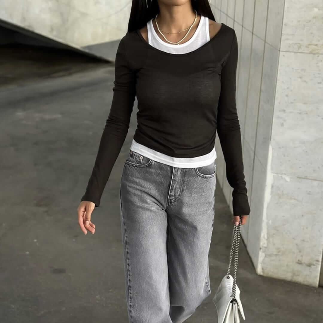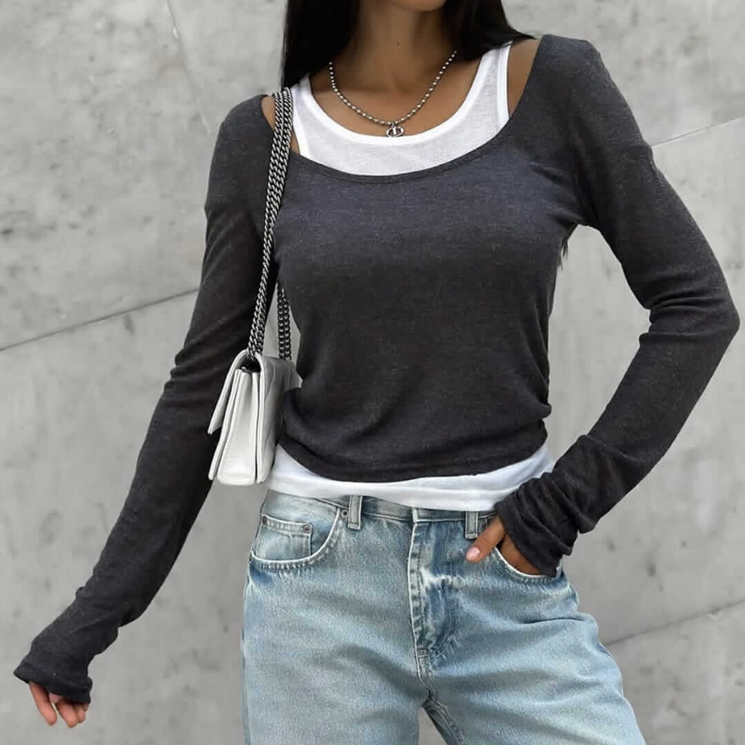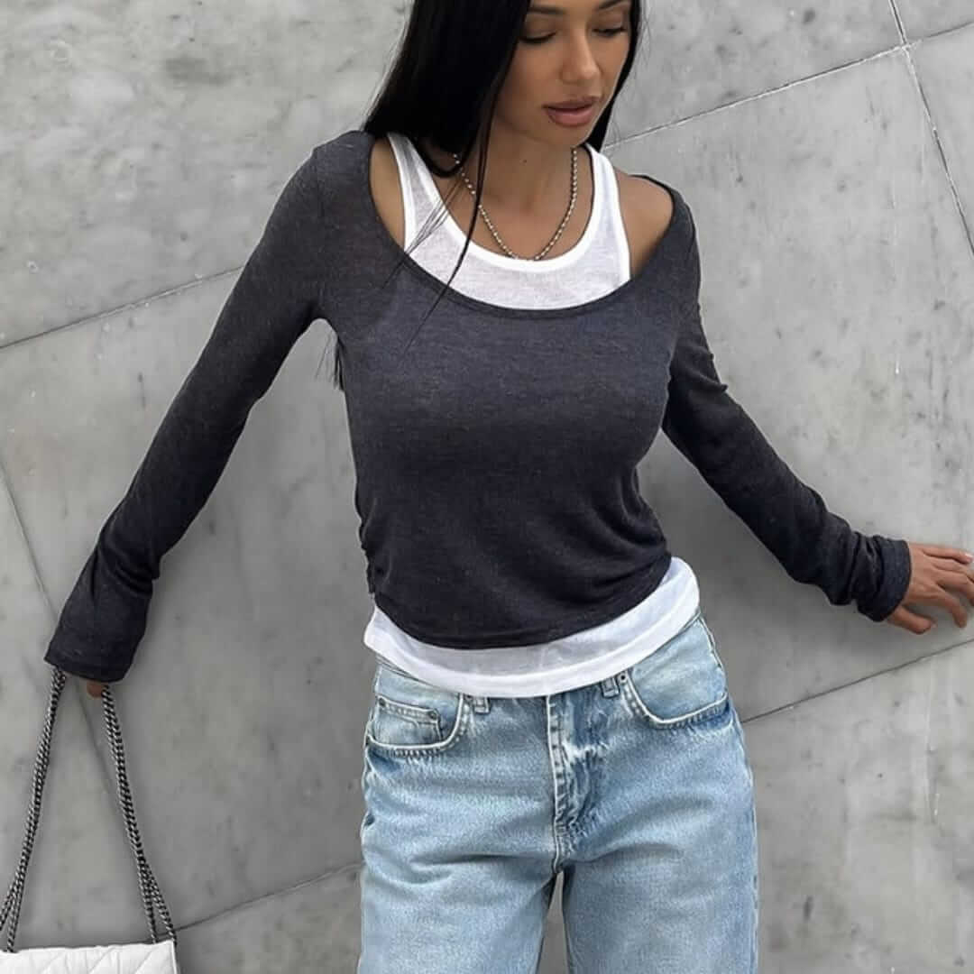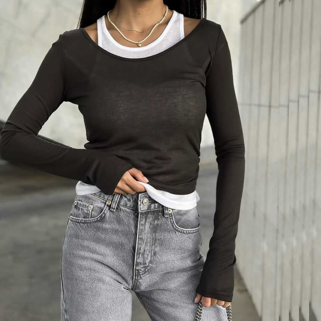 Layered Crop Top with Scoop Shirt