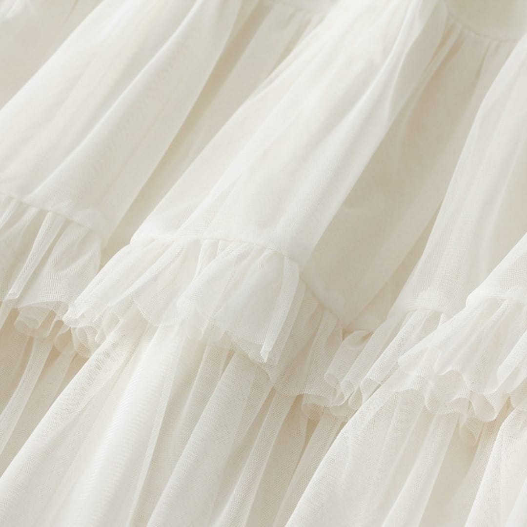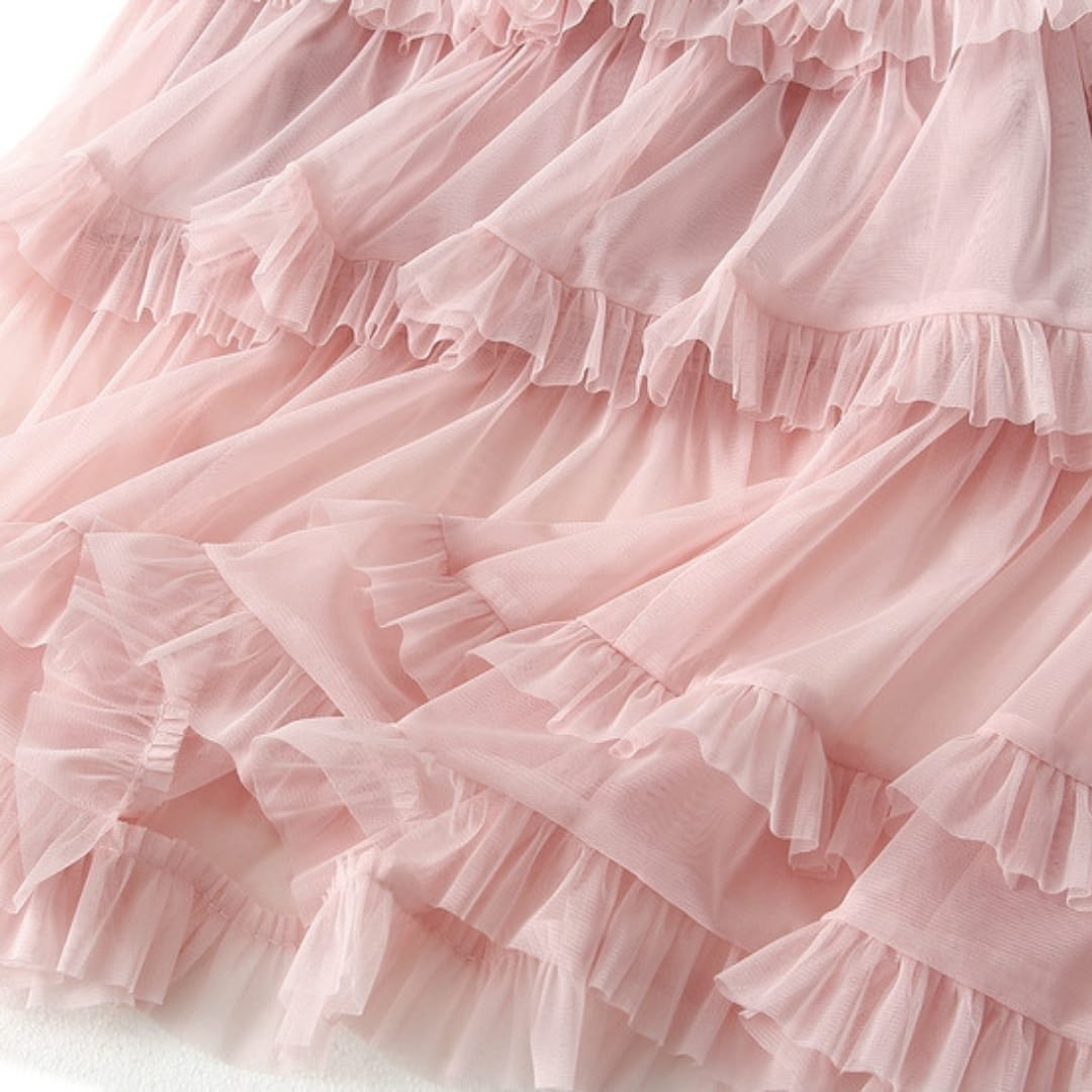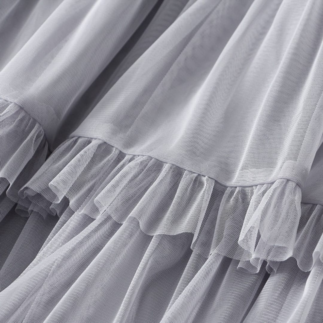 Romantic and airy, this layered sheer ruffled midi skirt adds graceful movement and feminine charm to any outfitperfect for both casual and dressy looks.