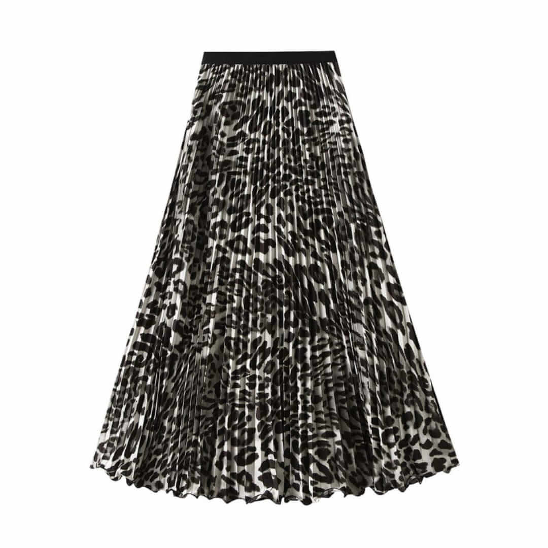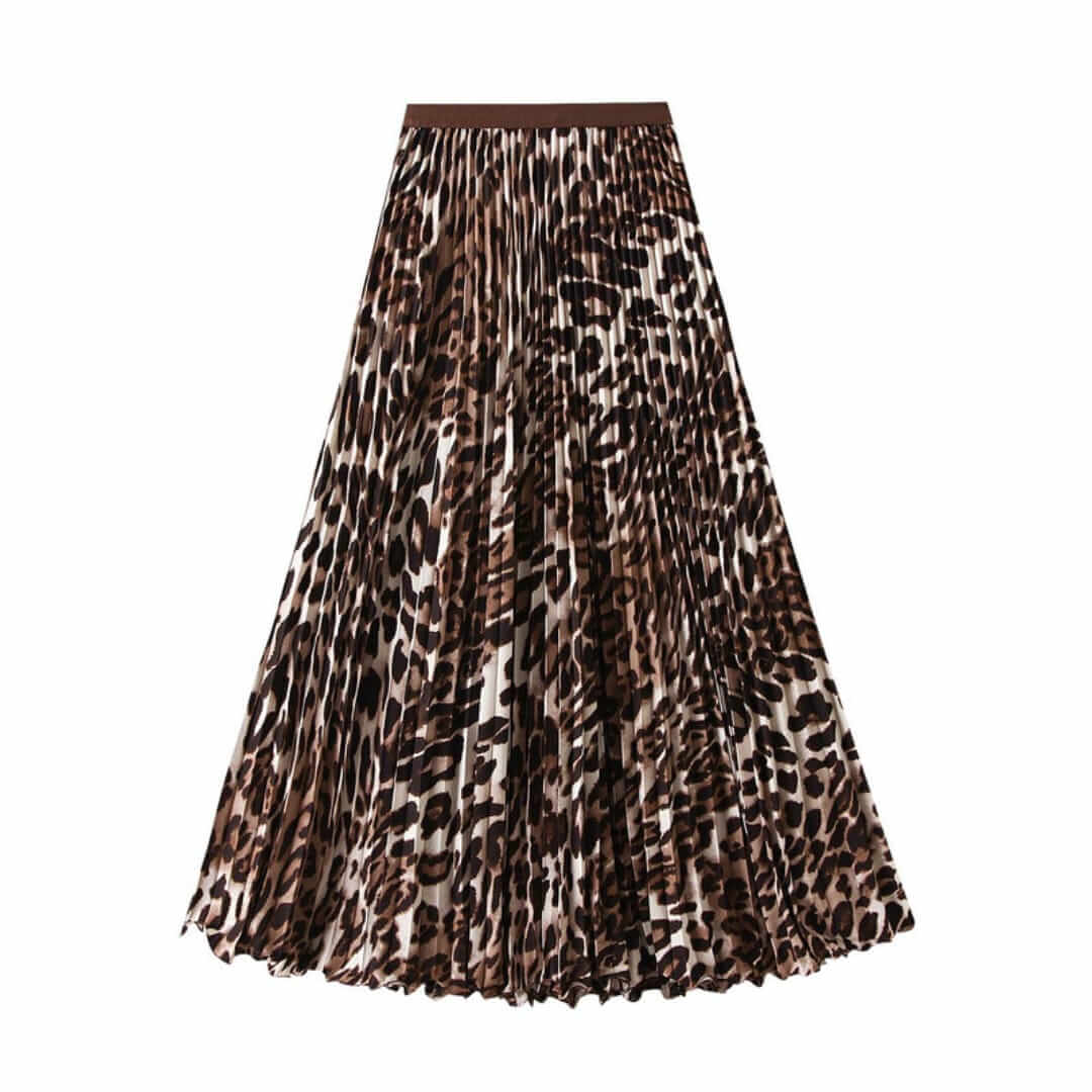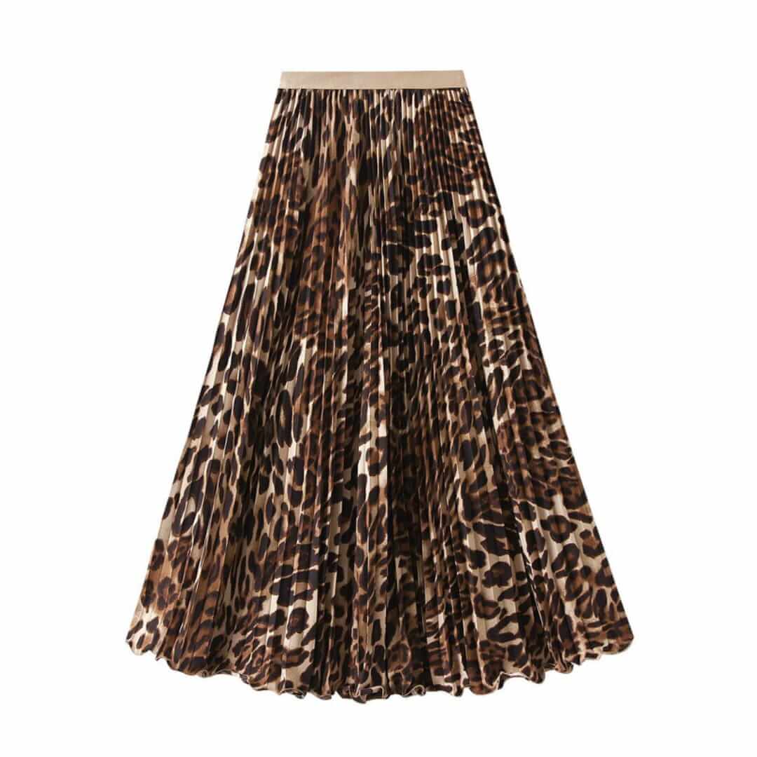 Turn heads with the Womens Leopard Pleated Midi Skirt, featuring a flattering pleated design and bold leopard printperfect for chic casual or evening outfits.