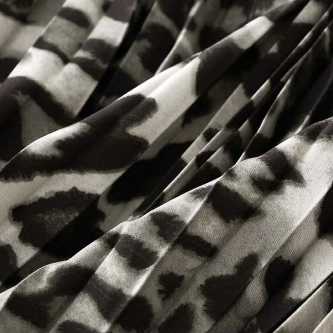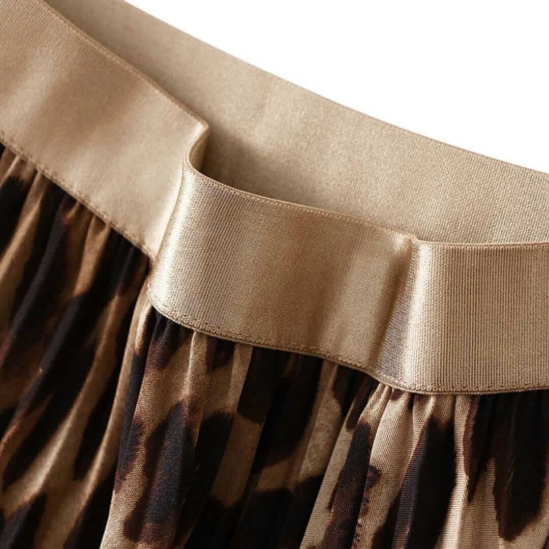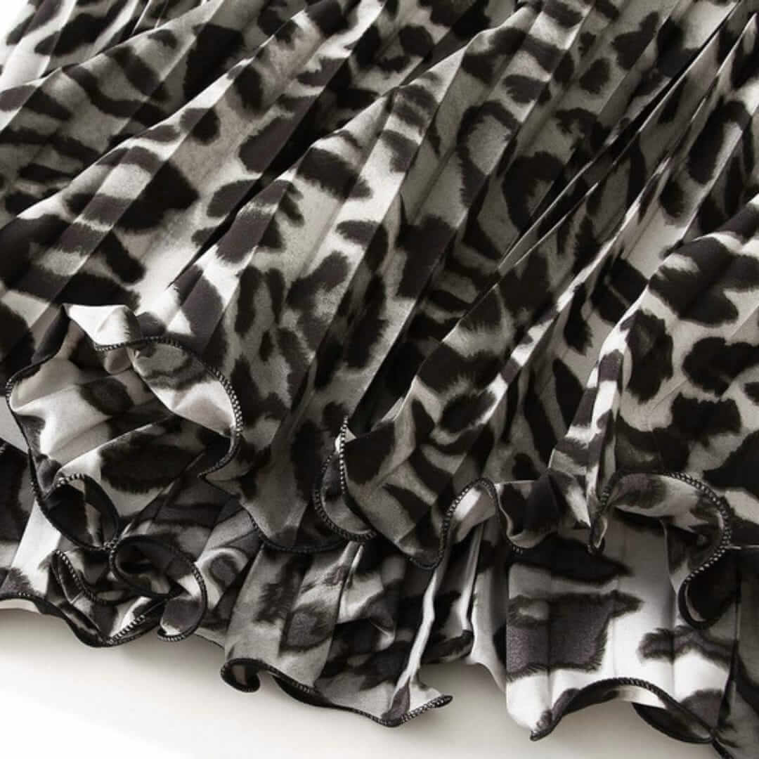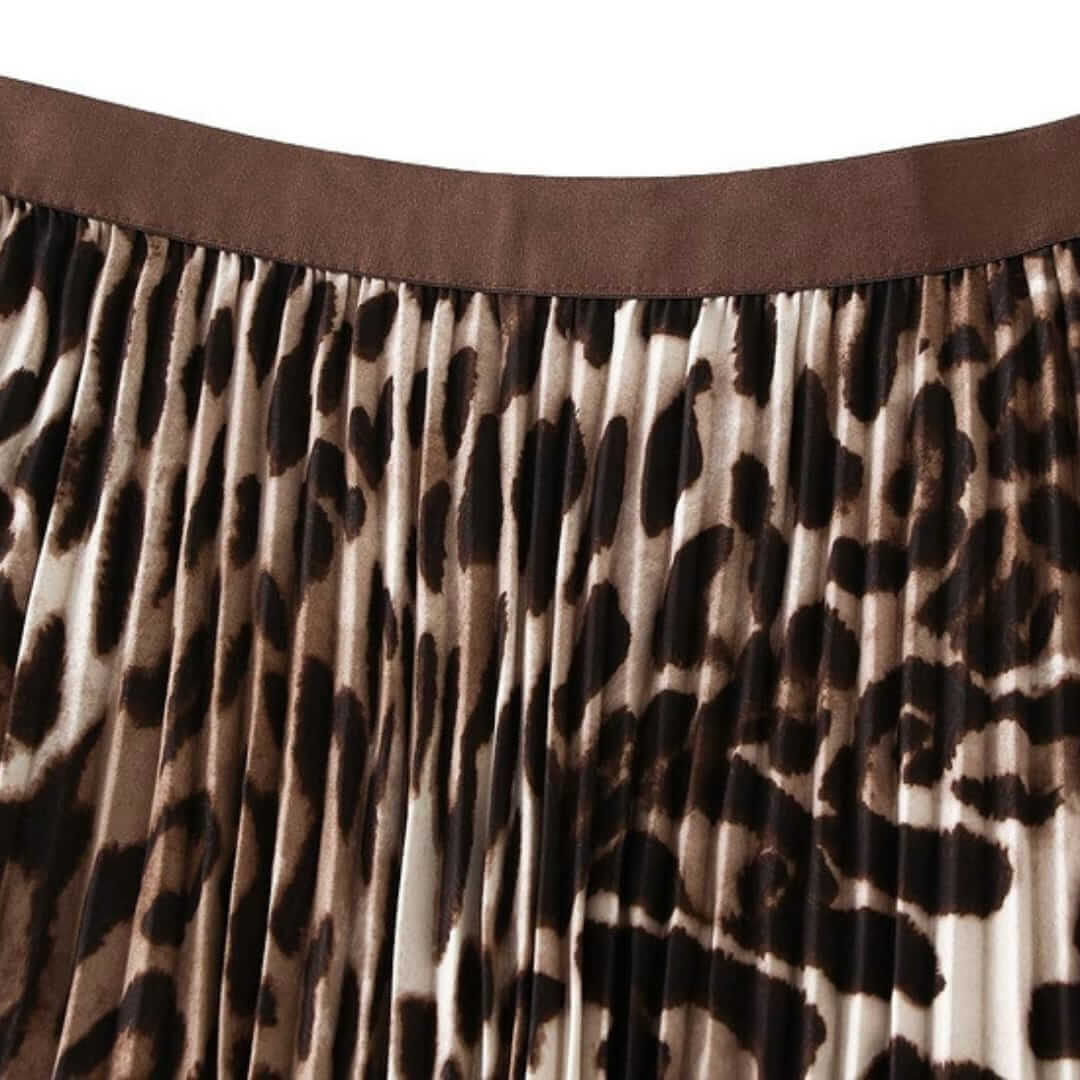Turn heads with the Womens Leopard Pleated Midi Skirt, featuring a flattering pleated design and bold leopard printperfect for chic casual or evening outfits.