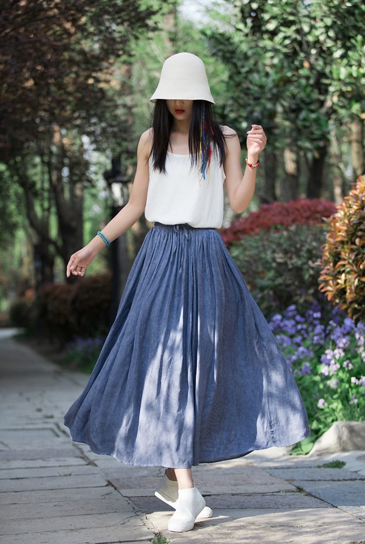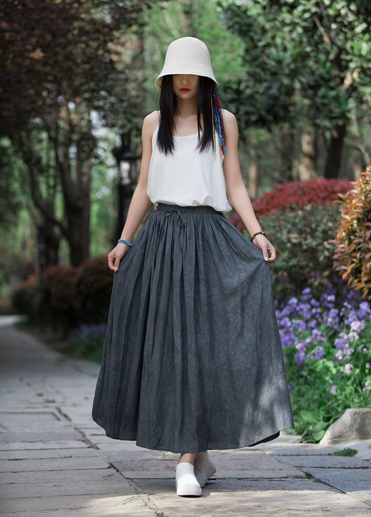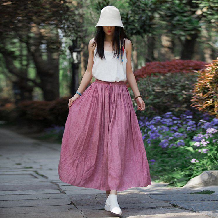 Stay effortlessly chic with this Womens Linen Blend Flared Long Skirt, featuring a comfortable elastic waist, breathable fabric, and a flowy silhouette perfect for casual and semi-formal wear.