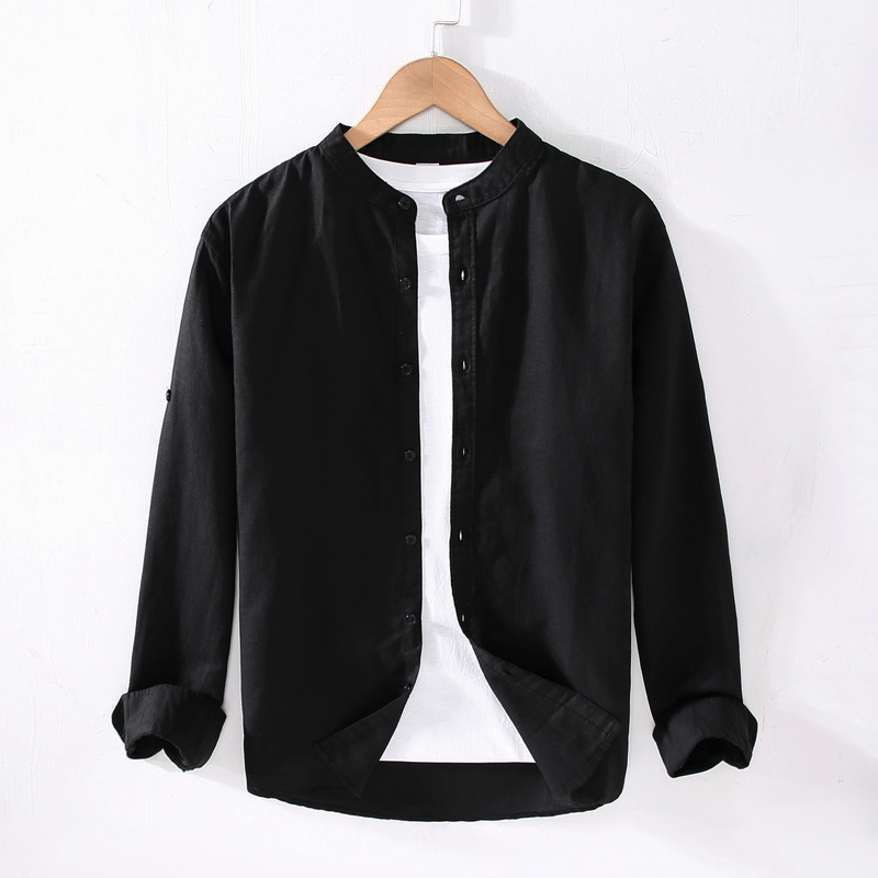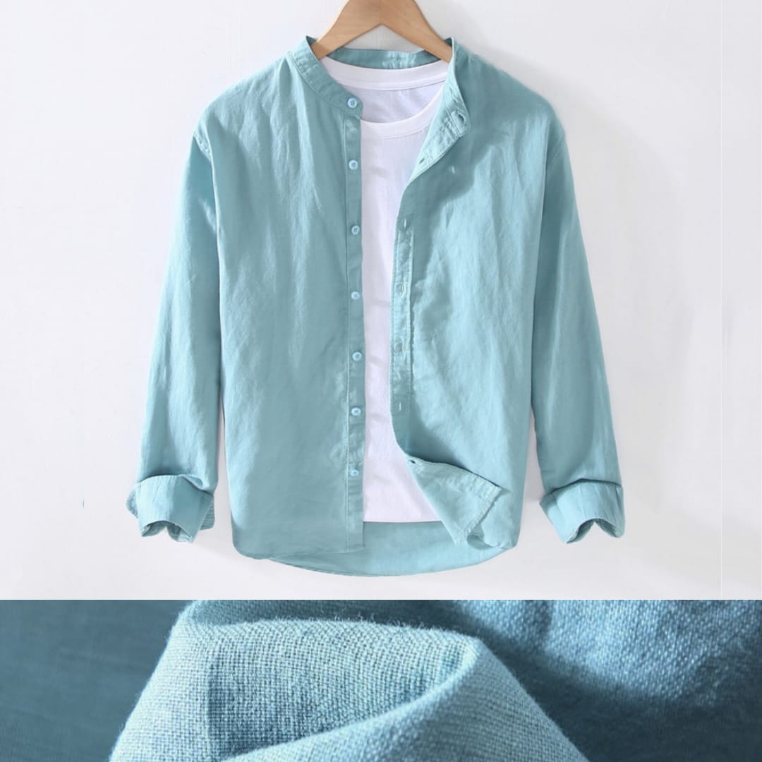 Mens Linen Cotton Blend Mao Collar Shirt stylish, breathable, and perfect for all occasions.