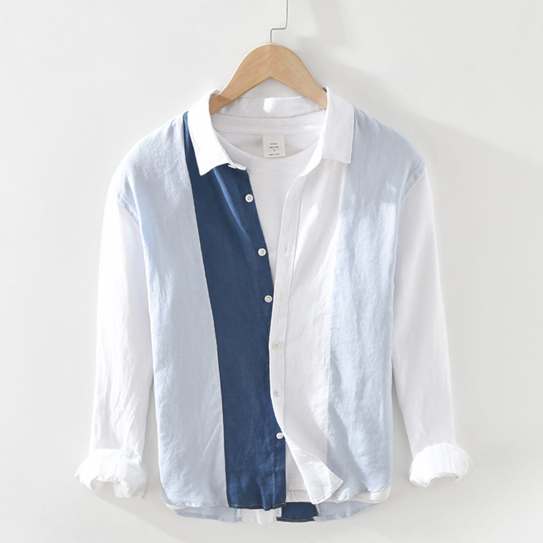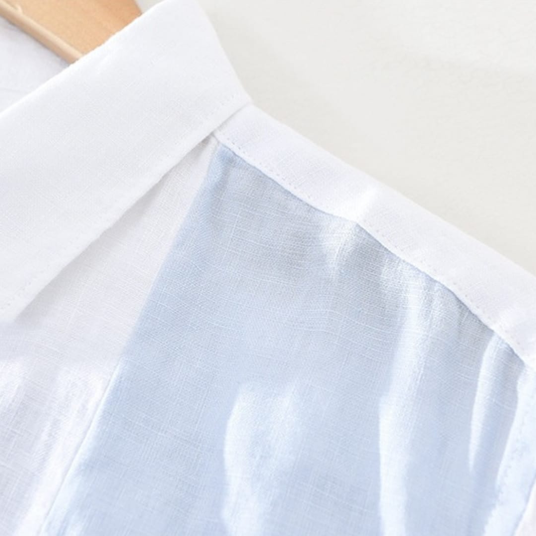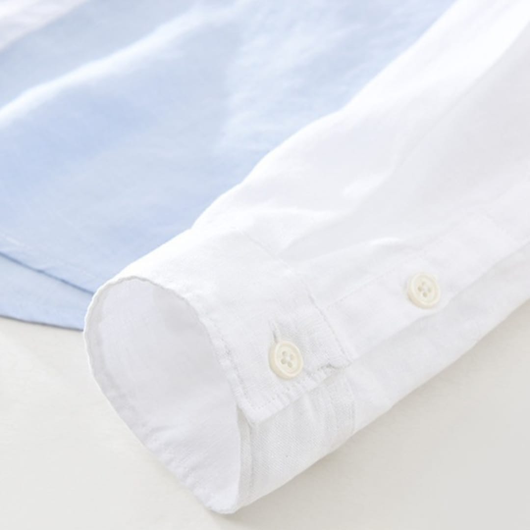 Premium pure linen long sleeve summer shirt with stylish contrast color design. Lightweight, breathable, and perfect for warm weather.