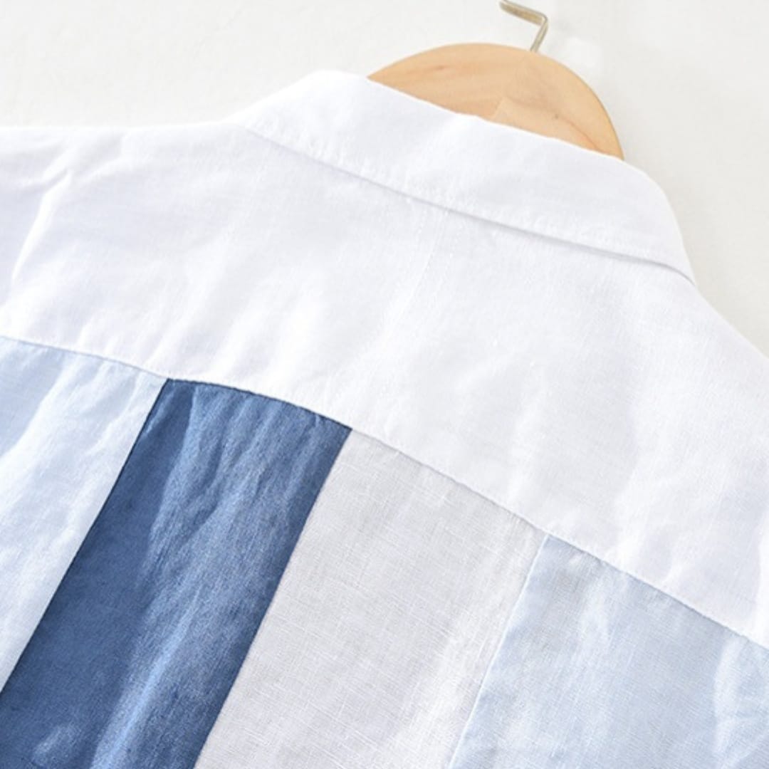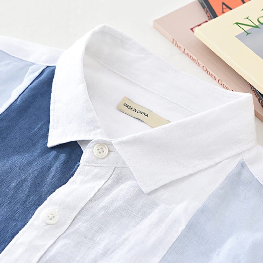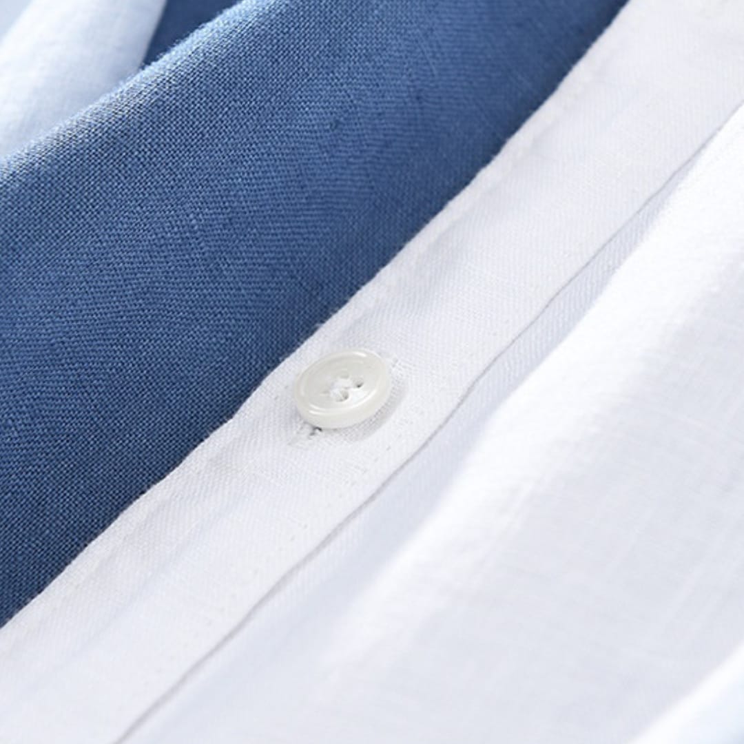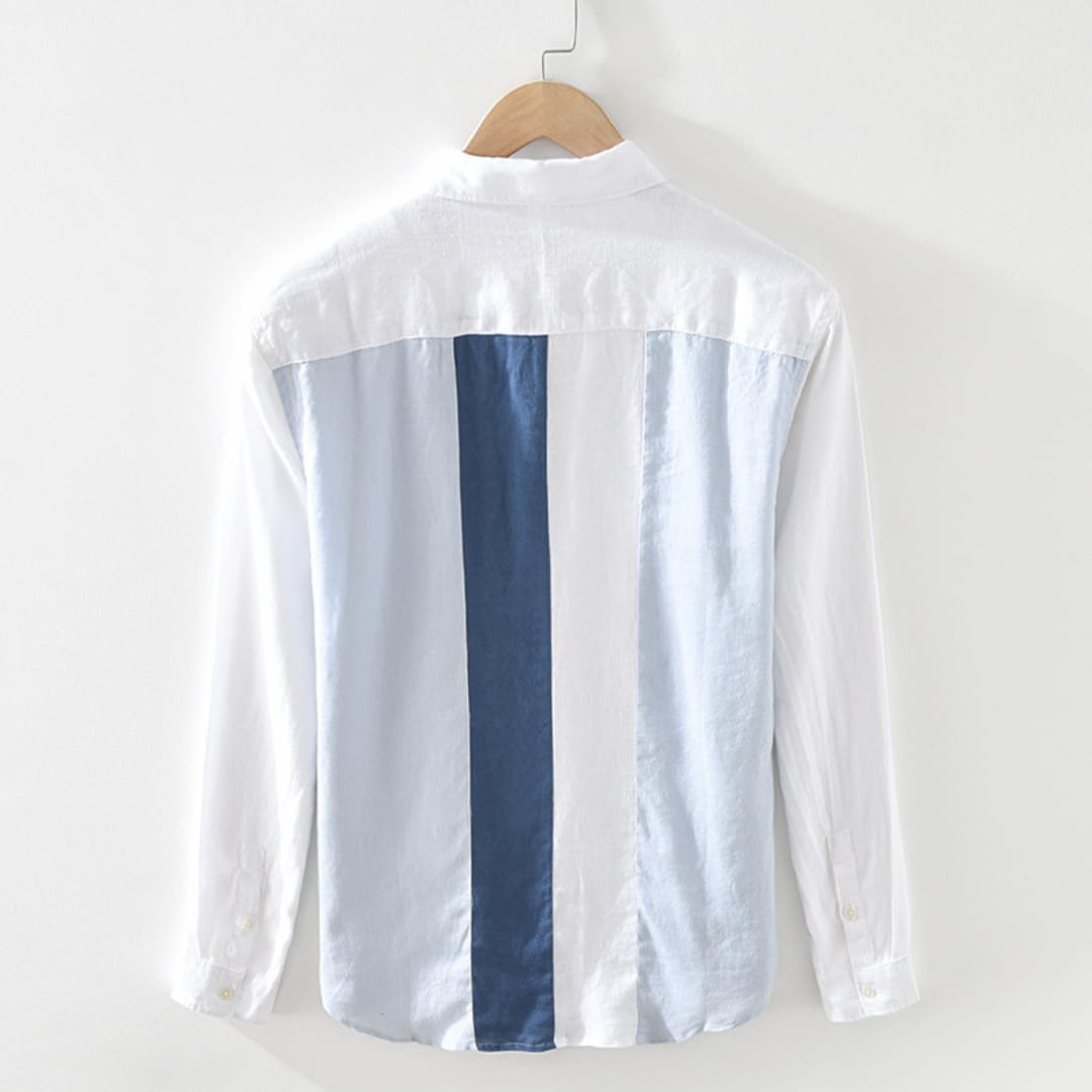 Premium pure linen long sleeve summer shirt with stylish contrast color design. Lightweight, breathable, and perfect for warm weather.