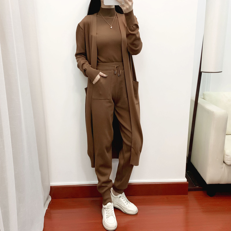 Elevate your everyday style with our Casual Everyday Autumn, Winter, and Spring 3-Piece Knitted Set. Featuring a mid-length long sleeve cardigan, a turtleneck sleeveless top, and loose-fit lounge pants, this set blends comfort, versatility, and seasonal chic.