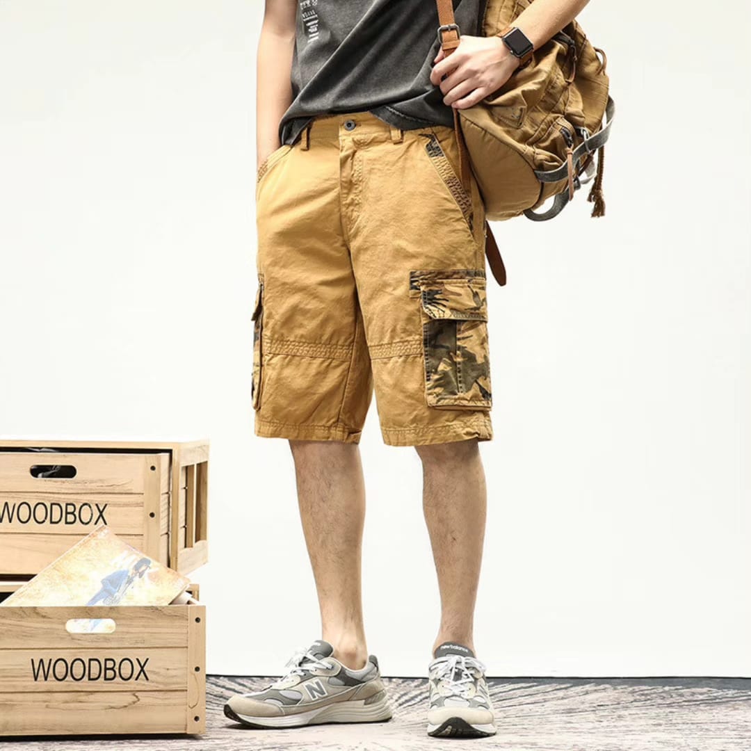 Long Cargo Shorts with Camouflage Pockets