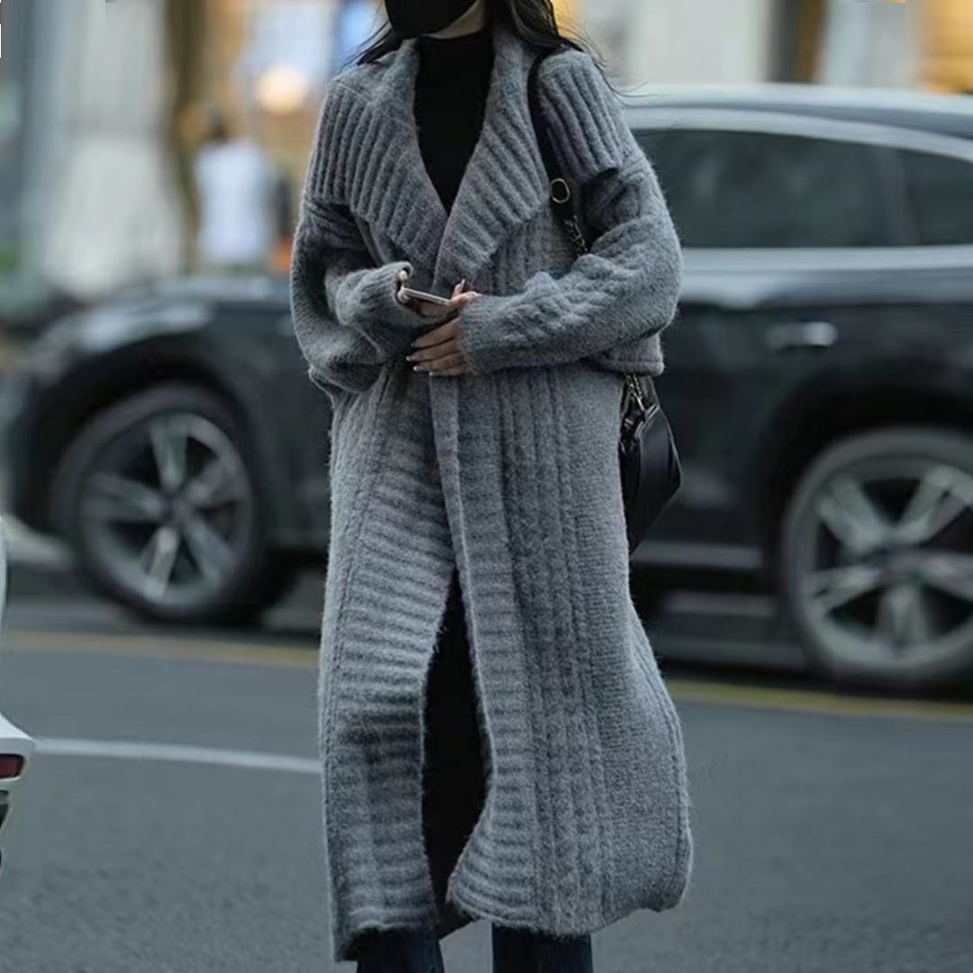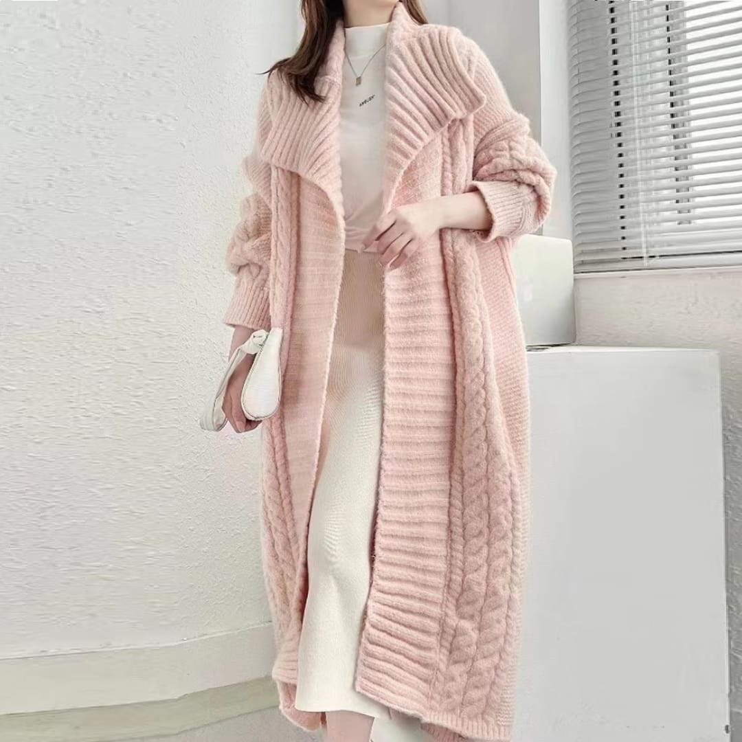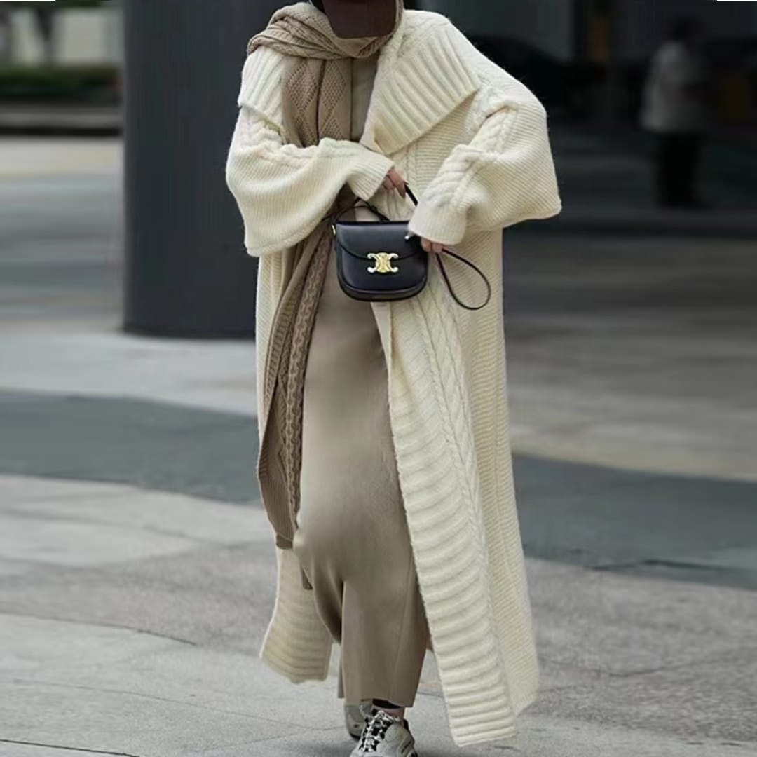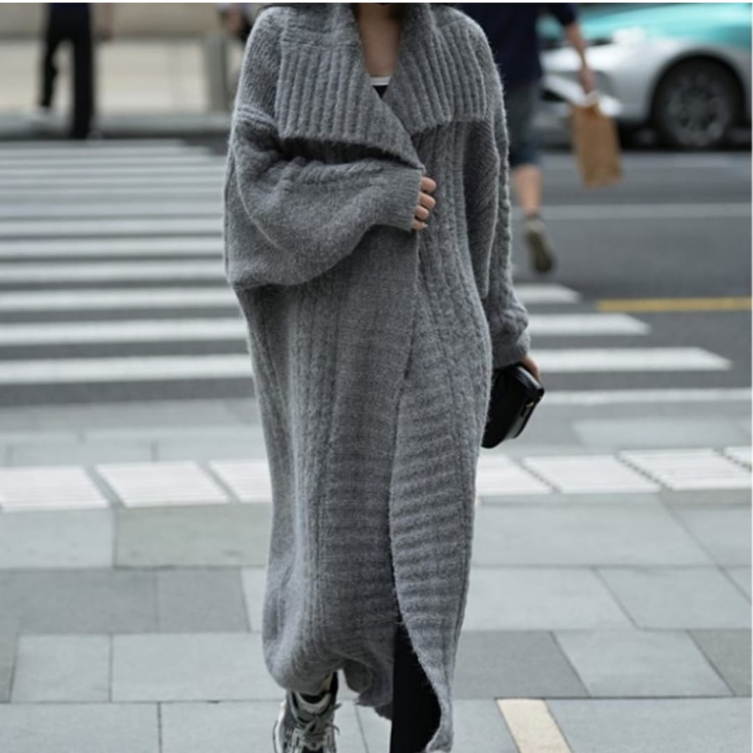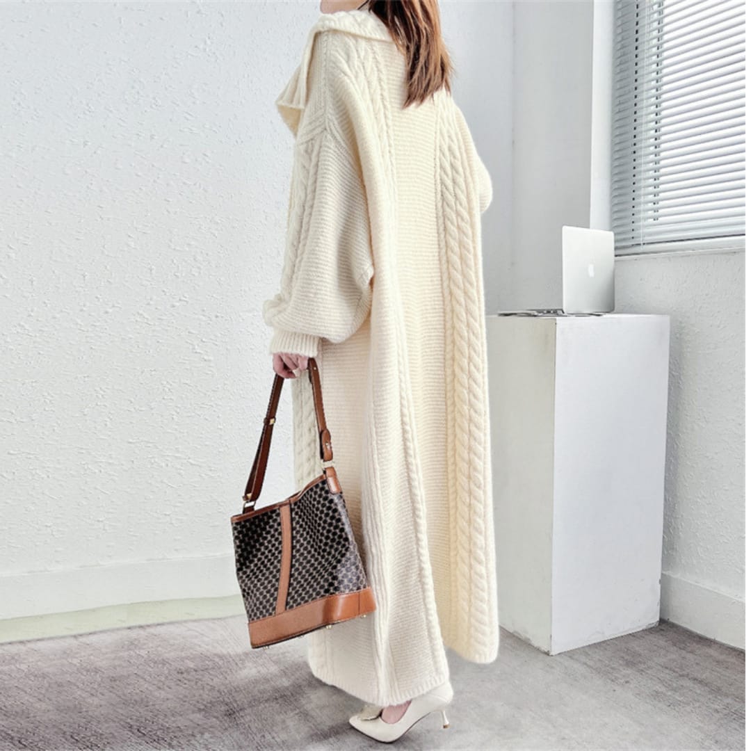 Wrap yourself in warmth and texture with this long knitted thick coat, designed in elegant solid color patterns.