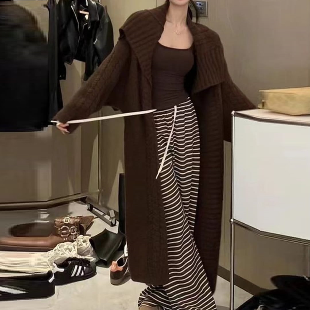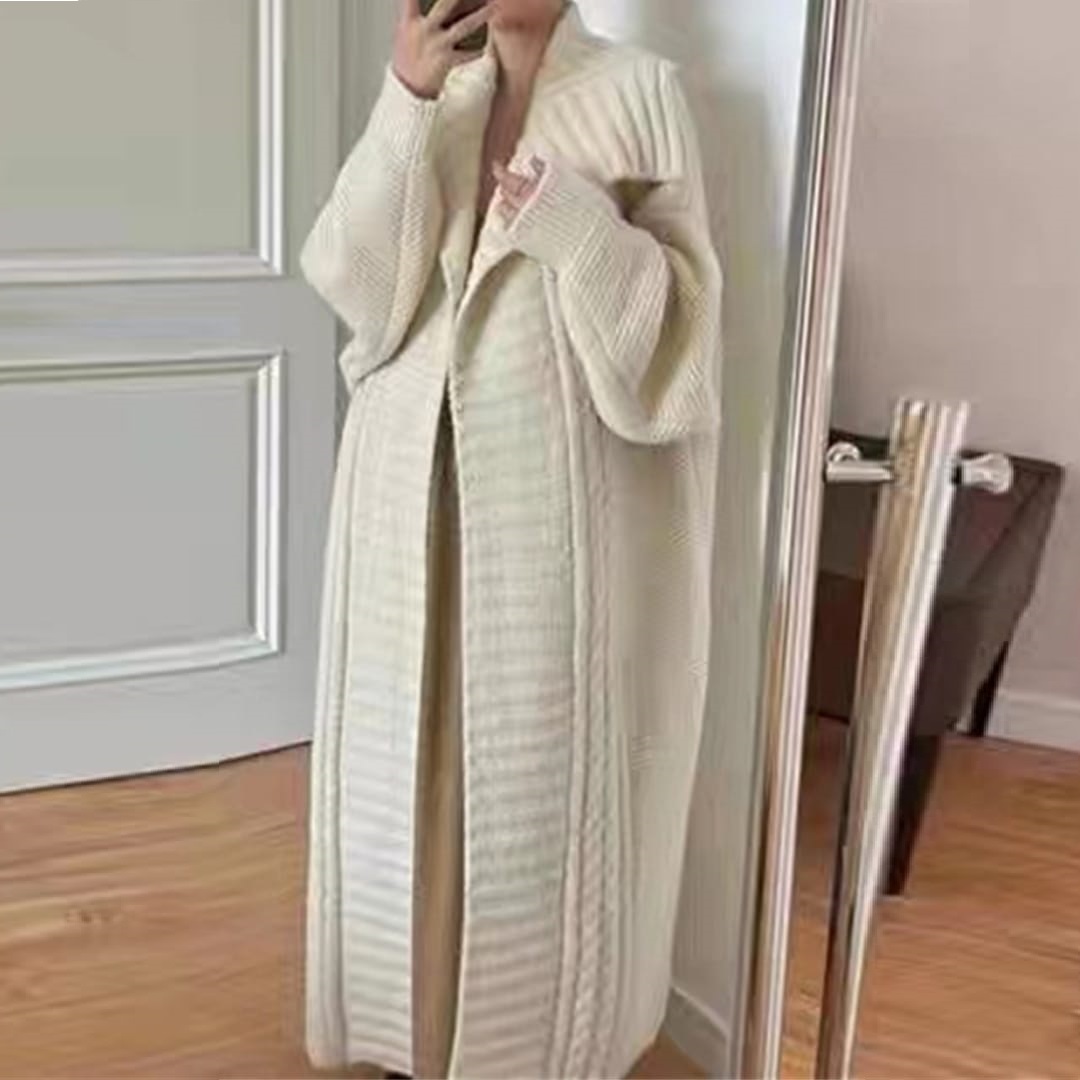 The Long Knitted Solid Color Patterned Thick Coat is a stylish and functional piece for the autumn and winter seasons. Featuring a rich knit texture and subtle woven patterns, this coat offers a unique twist on solid color outerwear. Made from thick, insulating yarn, it provides excellent warmth while maintaining a relaxed, comfortable fit. Perfect for layering over casual or dressy outfits, its your go-to for effortless seasonal layering and timeless appeal.Wrap yourself in warmth and texture with this long knitted thick coat, designed in elegant solid color patterns.