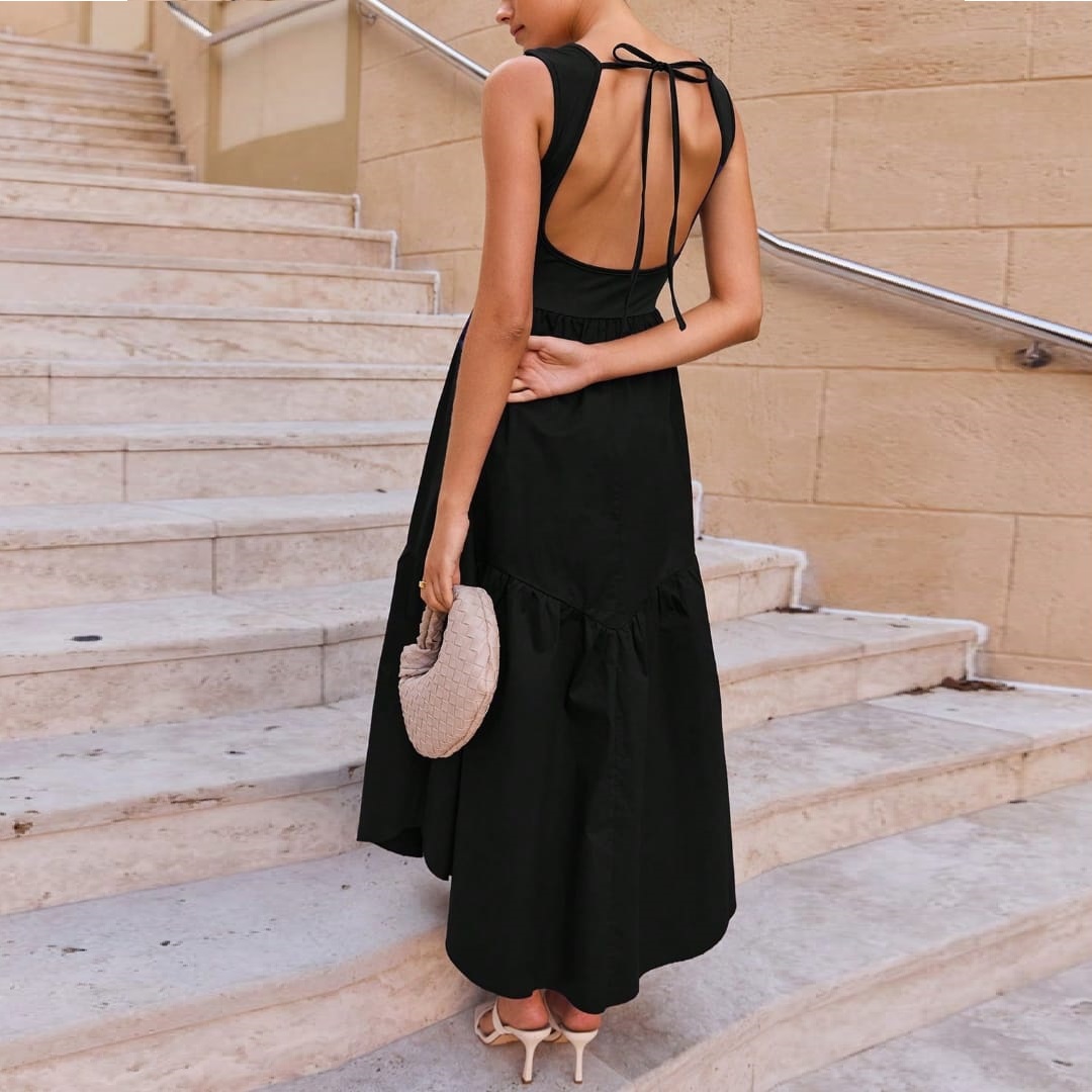 Discover timeless beauty in our Long Simple Maxi Dress with Back Lace-Up a minimalist design with a striking back detail. Crafted from soft, flowy fabric, this dress features a flattering full-length silhouette and an adjustable lace-up back for a custom fit and added charm. The sleeveless, clean-cut front offers simplicity, while the open back adds a hint of allure. Ideal for summer outings, beach vacations, casual parties, or even laid-back weddings, this dress can be dressed up or down with ease. Comfortable, versatile, and effortlessly chic its the go-to maxi dress for modern, minimalist wardrobes.