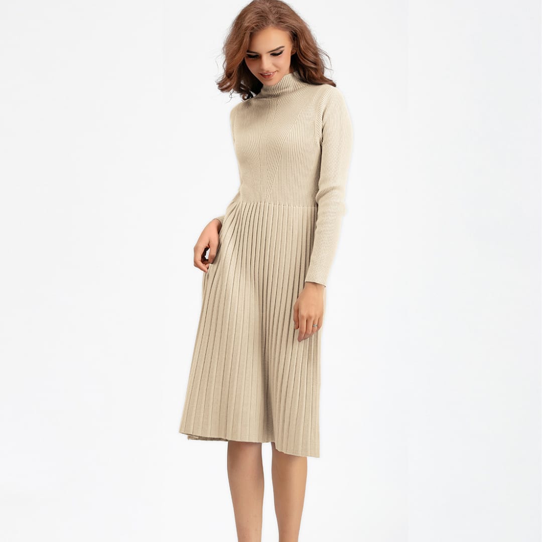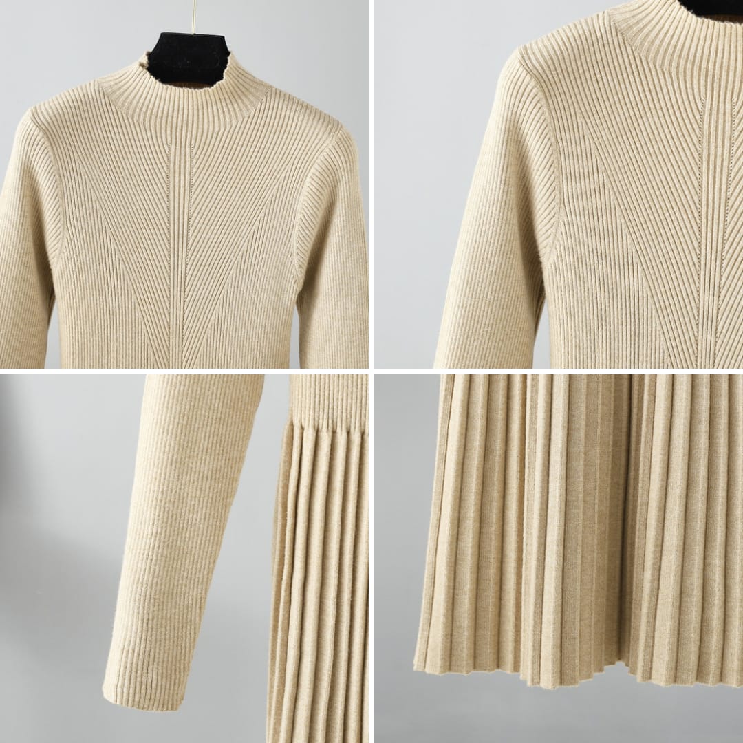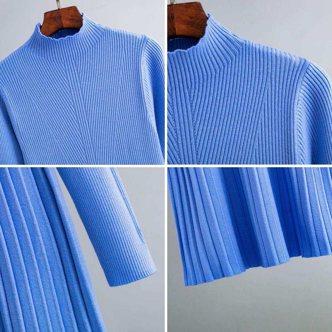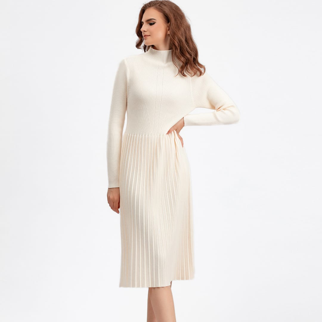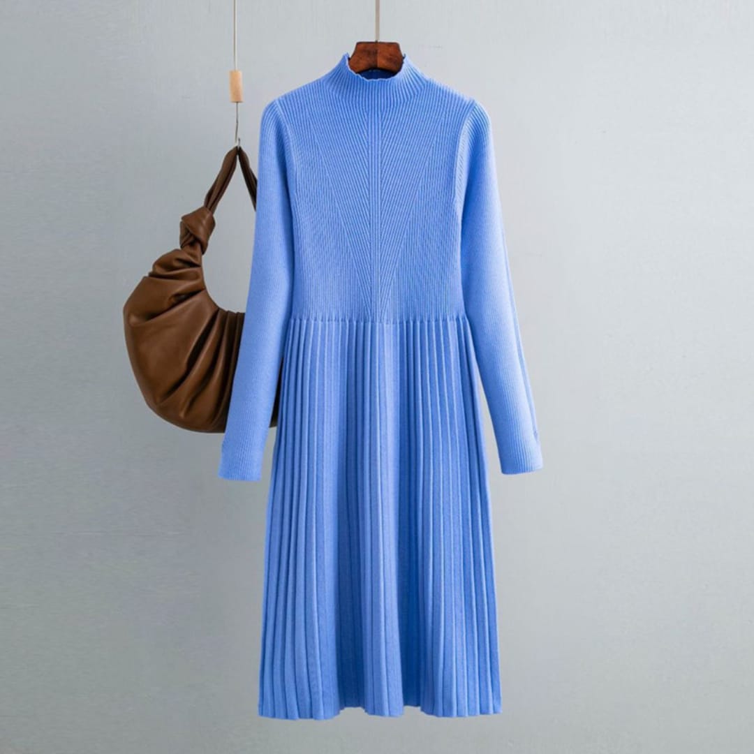 Stay warm and stylish in this autumn and winter solid color dress with a timeless long-sleeve silhouette.