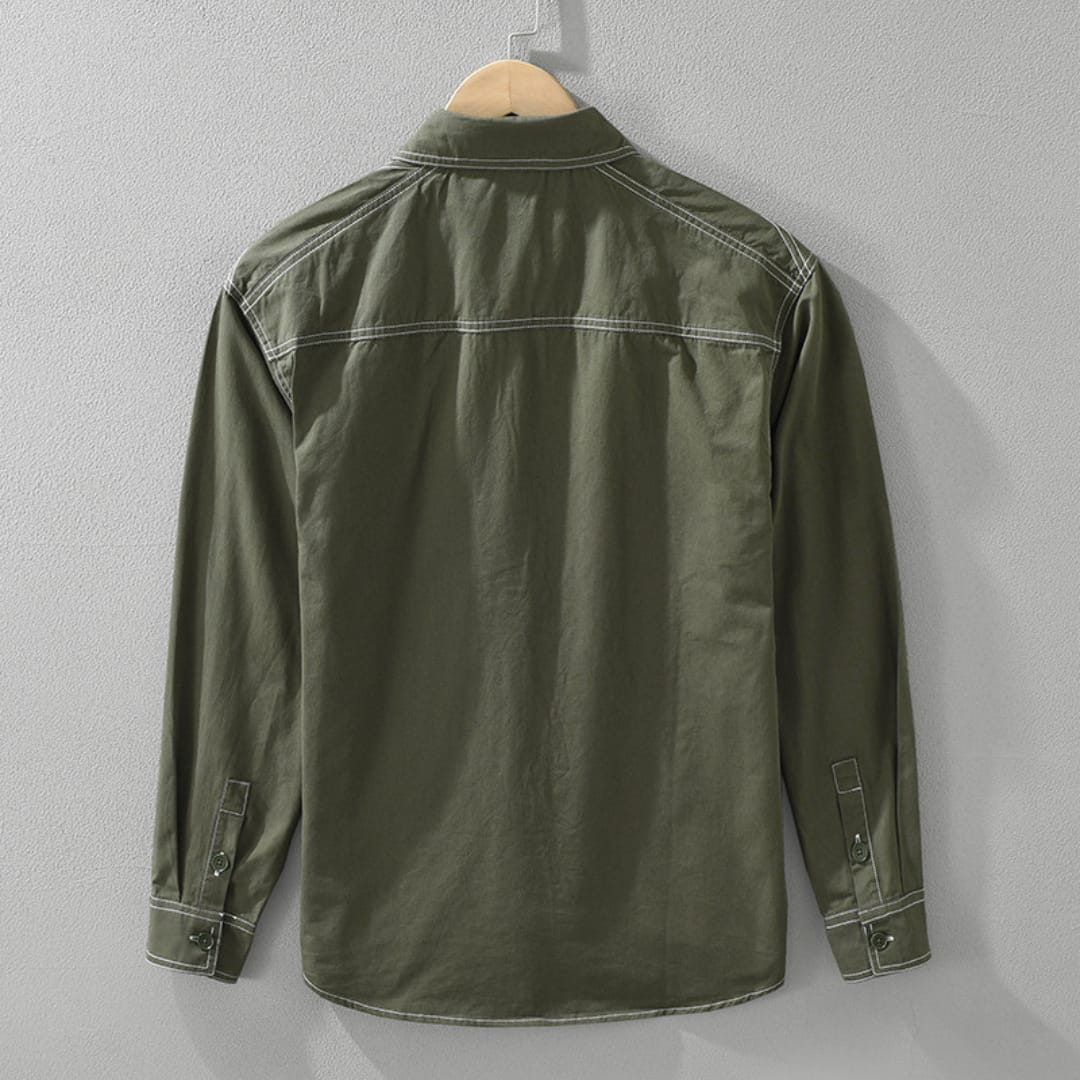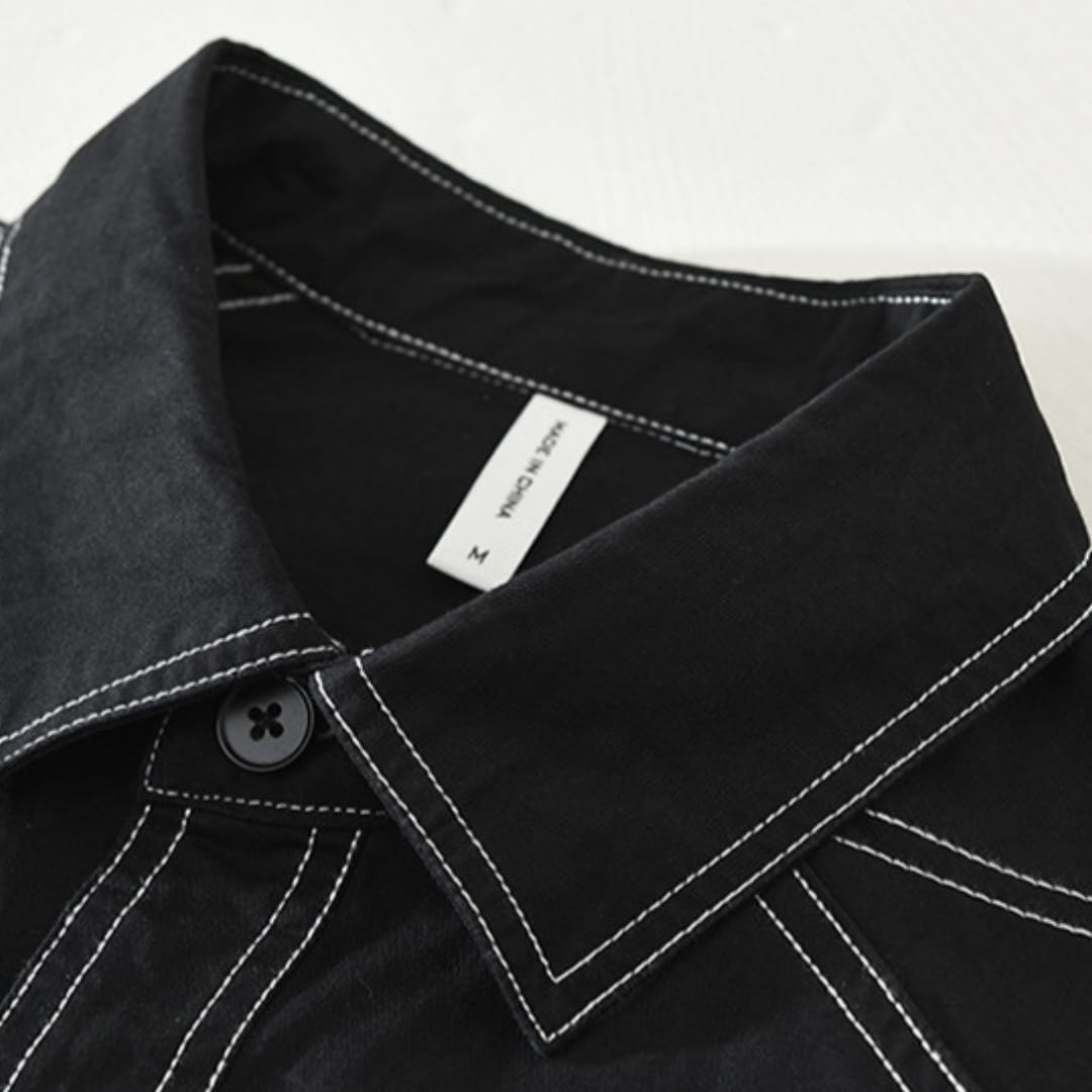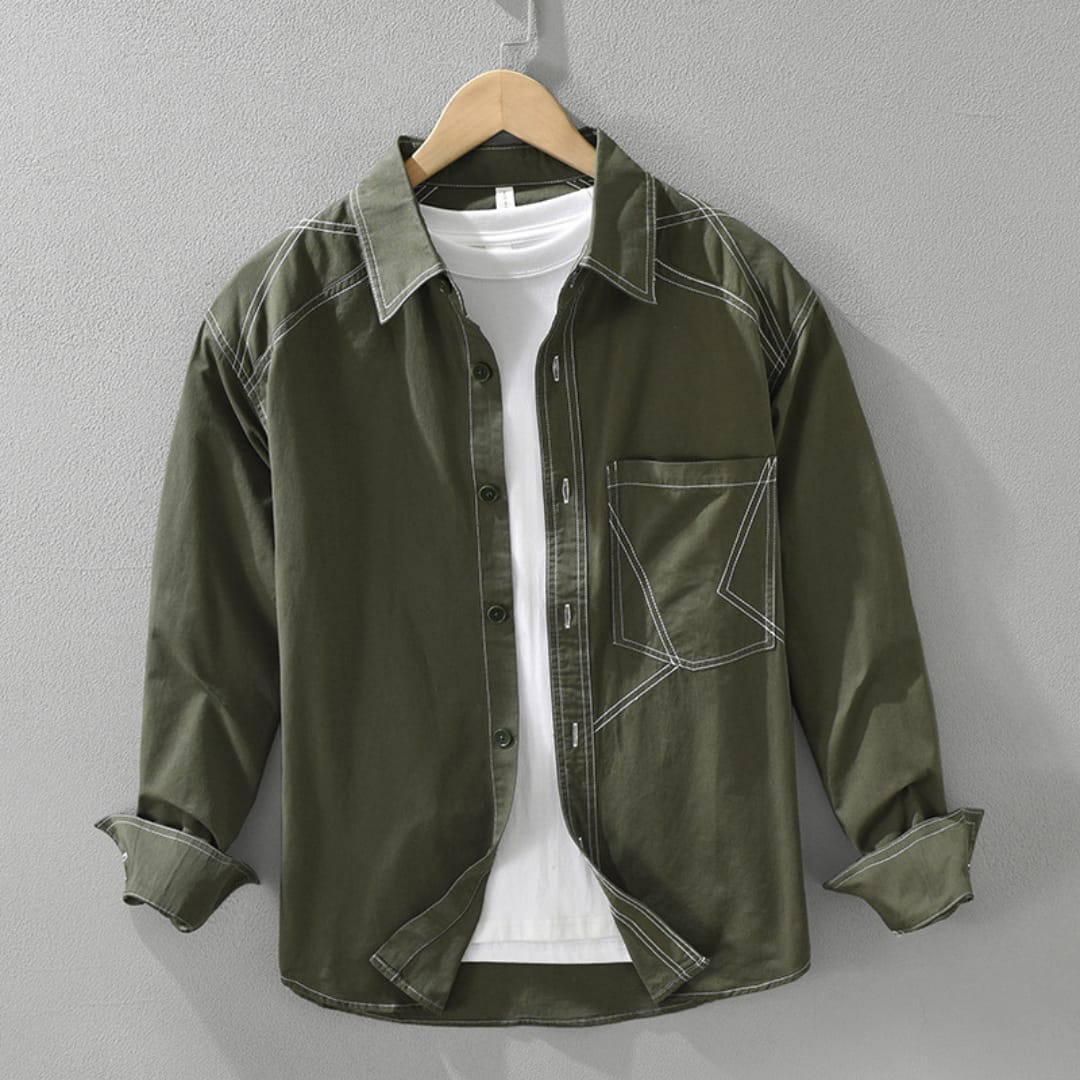 Stay warm and stylish in this loose-fit, pure cotton shirt with bold contrast stitchingideal for fall and winter.