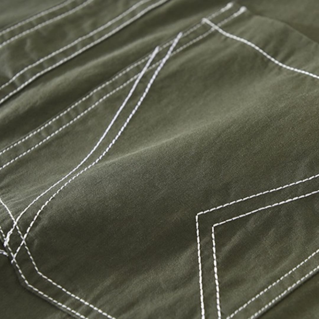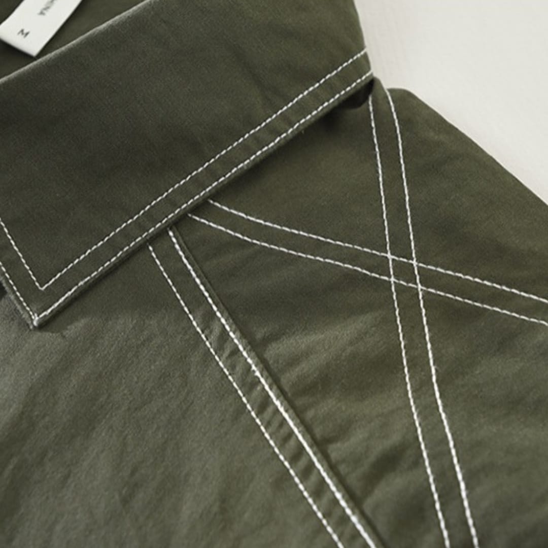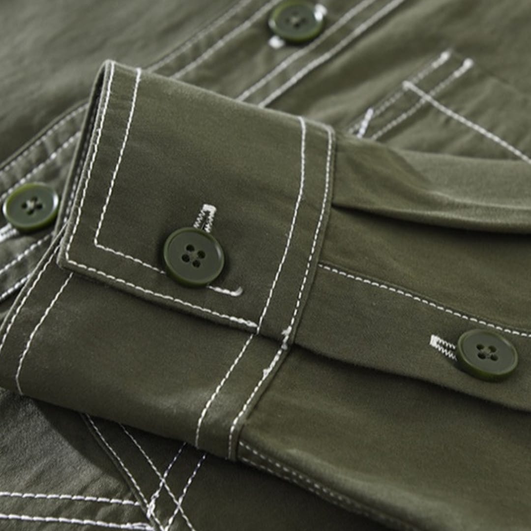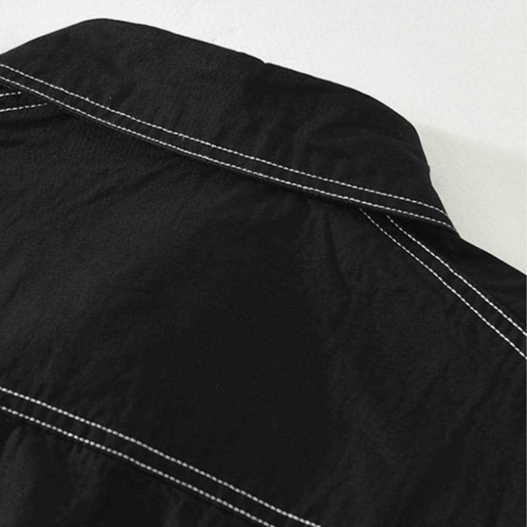 Stay warm and stylish in this loose-fit, pure cotton shirt with bold contrast stitchingideal for fall and winter.