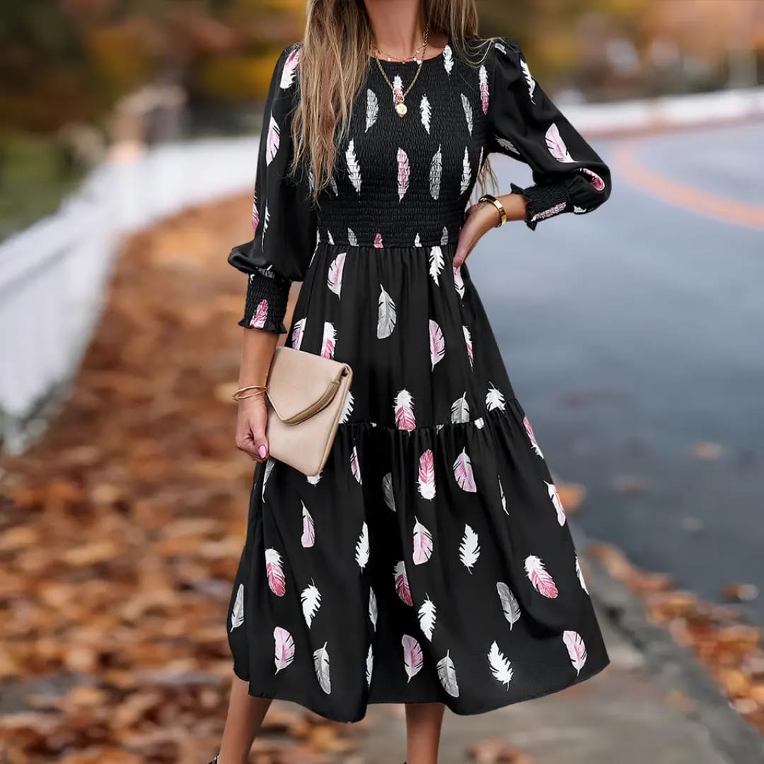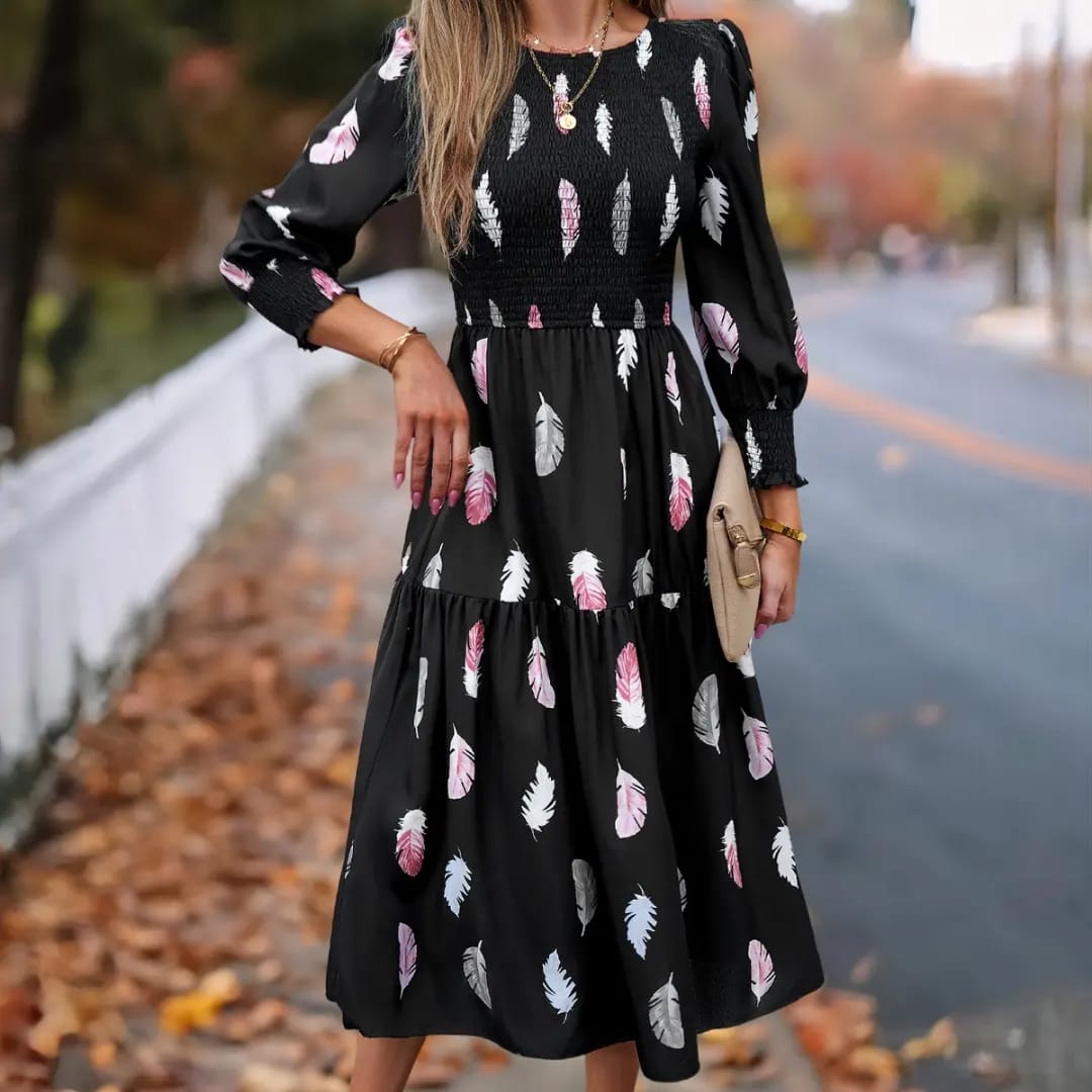 Turn heads this season with a long sleeve floral autumn dress where charm meets comfort.