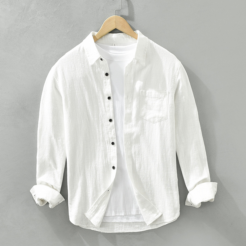 Mens long-sleeve high-end shirt made from a breathable ramie-cotton blend, offering comfort, elegance, and timeless style for any occasion.