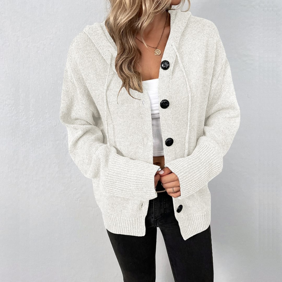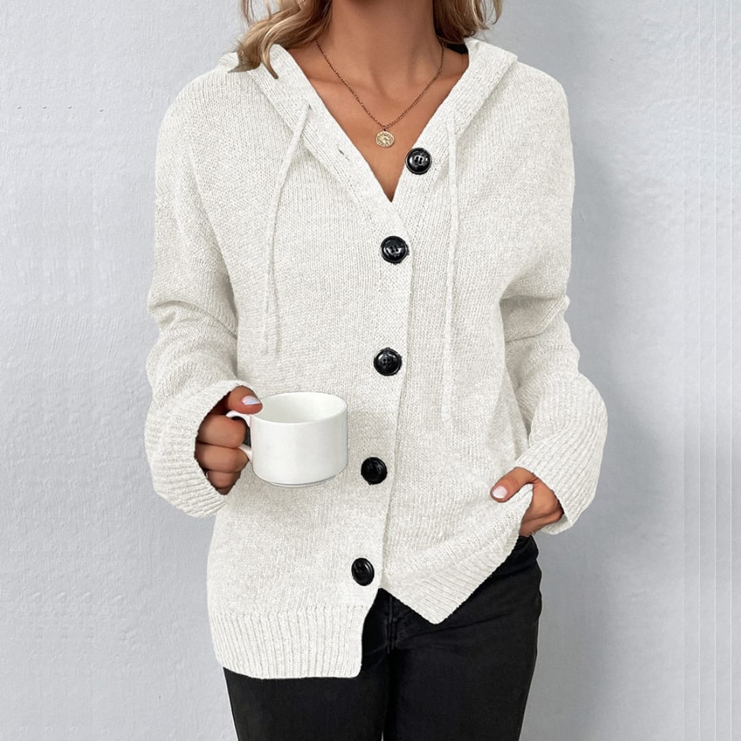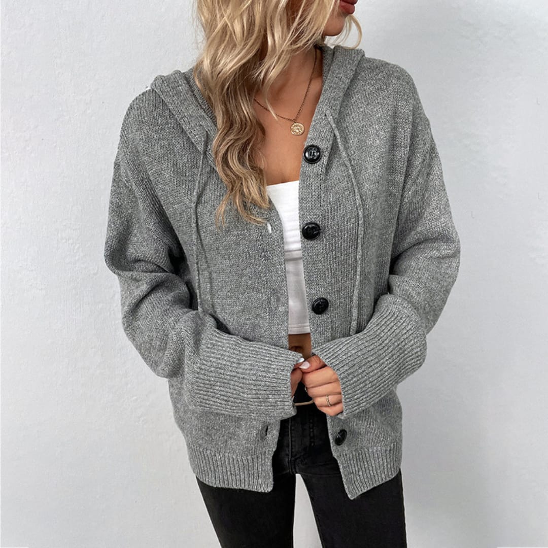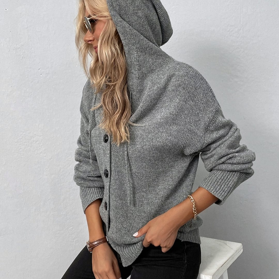 Long Sleeve Hooded Cardigan With Large Buttons