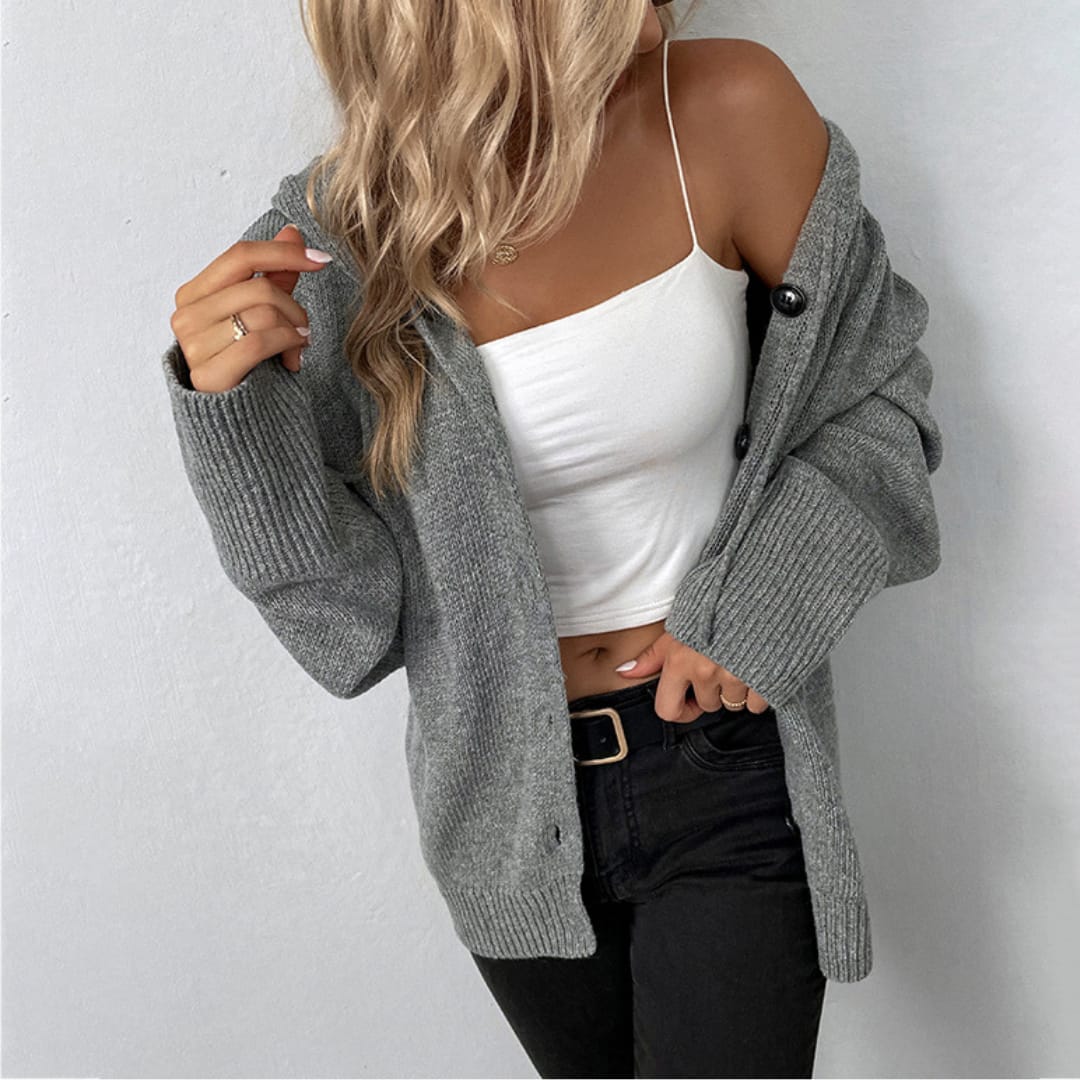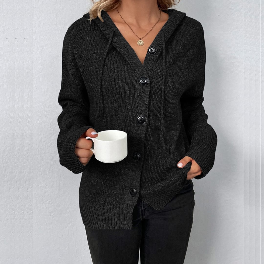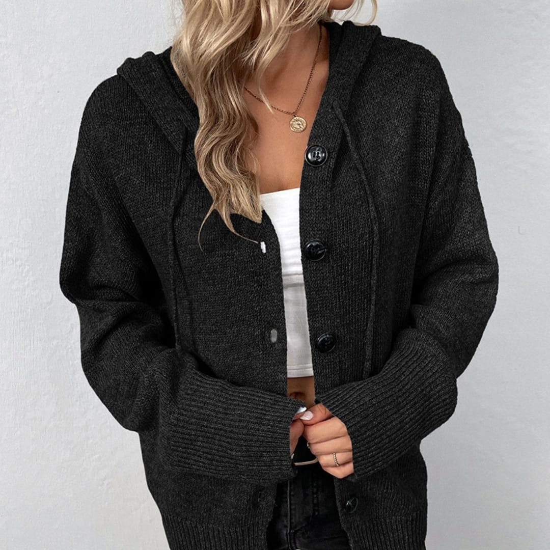 Stay warm and stylish this season with our Womens Autumn Winter Long Sleeve Hooded Cardigan featuring large buttons. Perfect for layering, this cozy knit cardigan combines comfort, practicality, and casual-chic design for everyday wear.