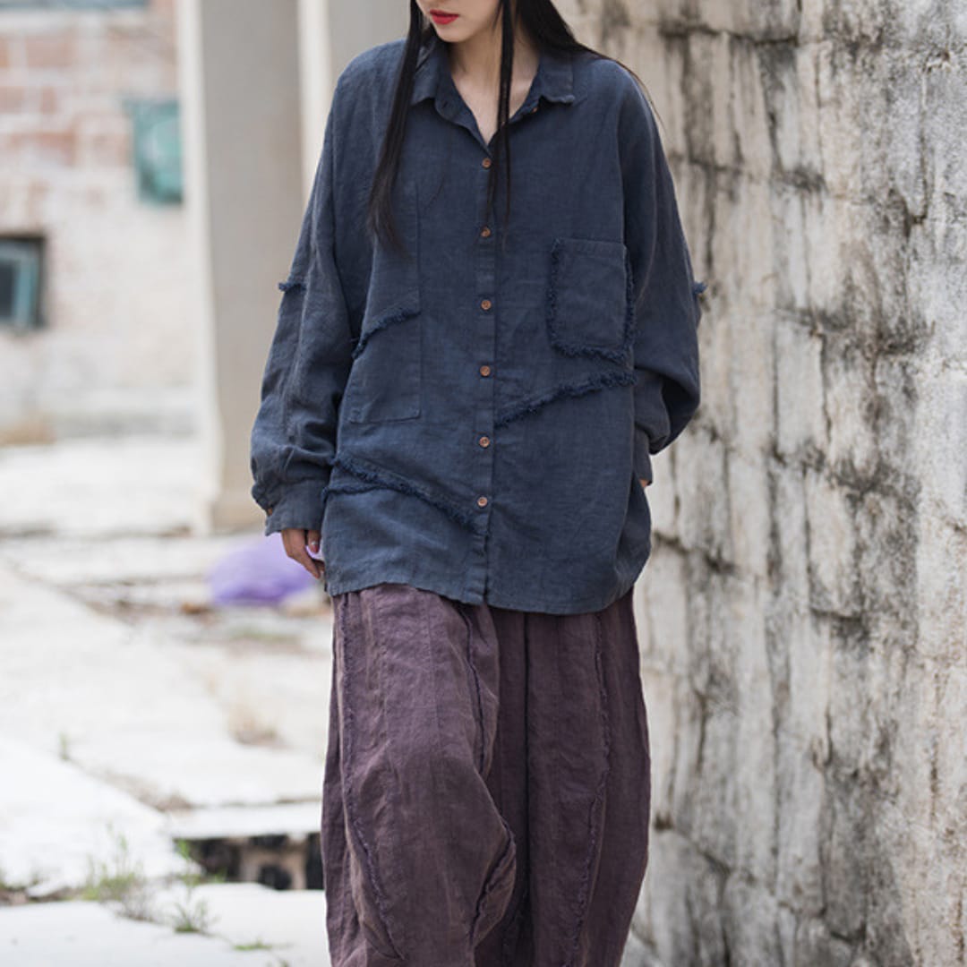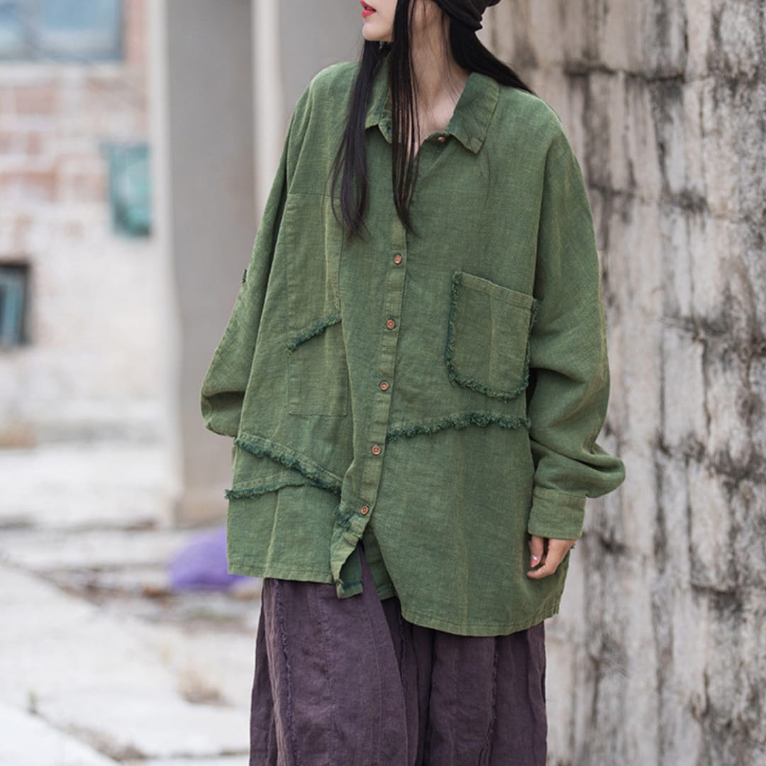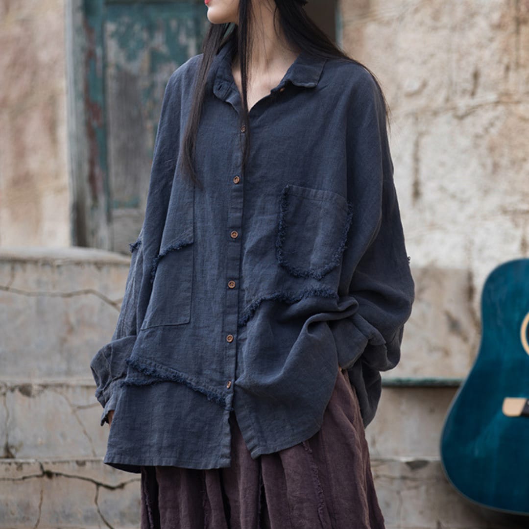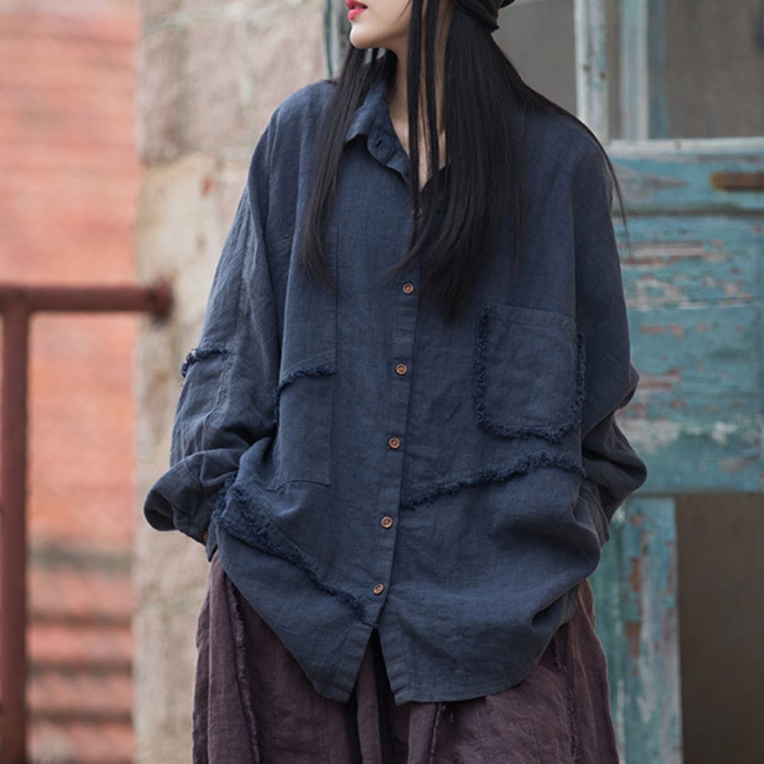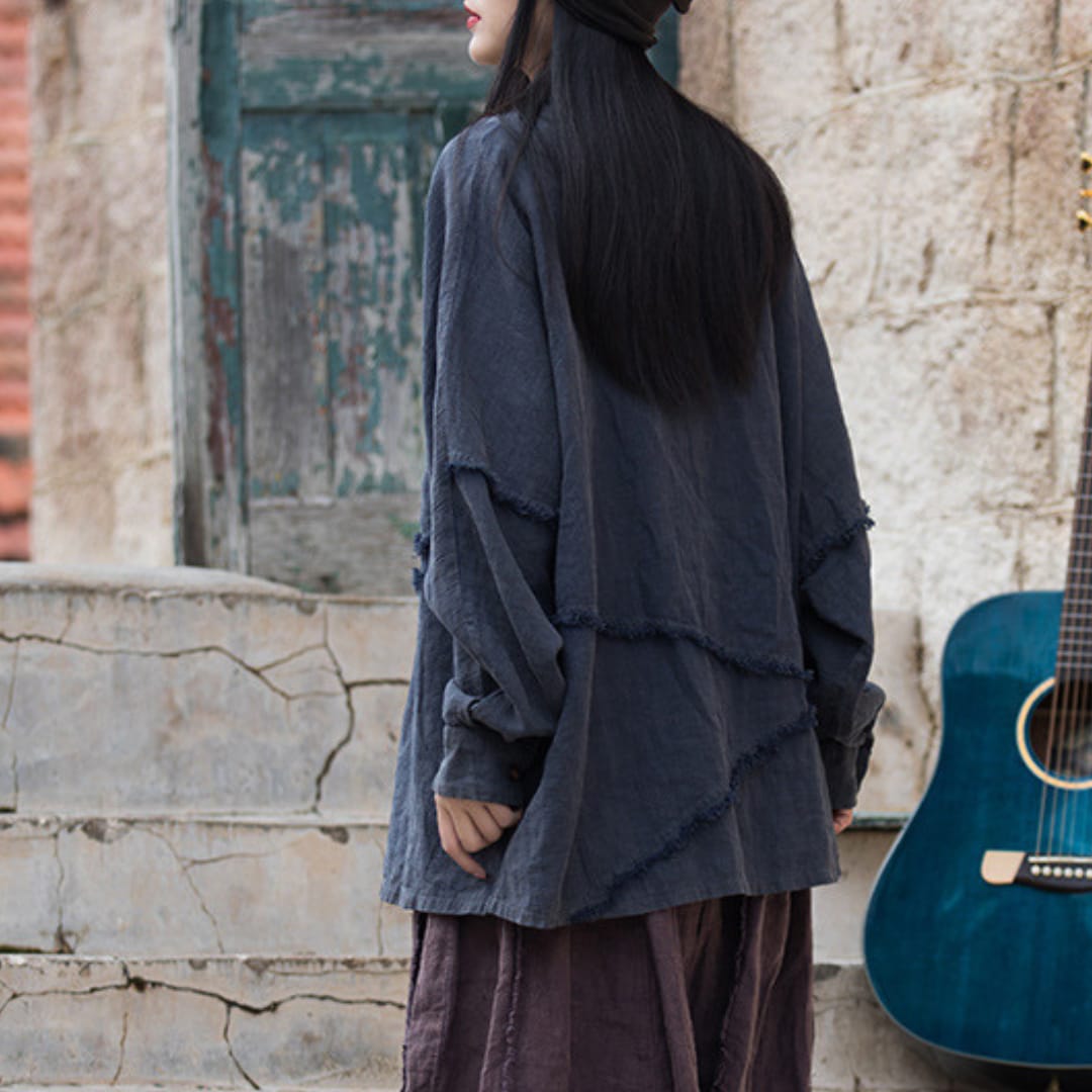 Chic womens long sleeve irregular shirt, perfect for breezy spring and summer styling.